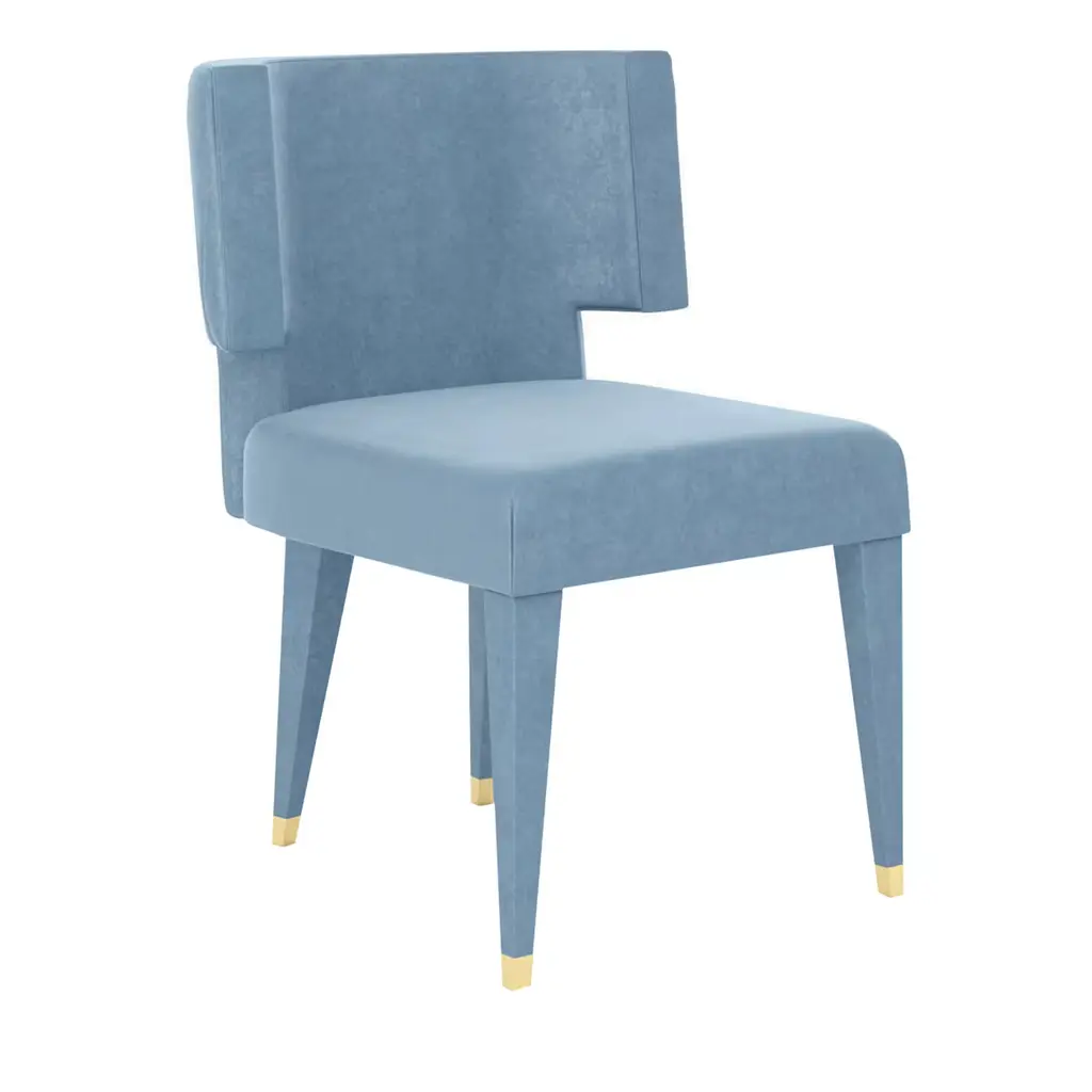 Elegant and stately, this armchair makes a glamorous addition to a living room, especially when paired with the arm-less version, or private study. The sophisticated velvet upholstery is in a versatile dove-gray color and covers the entire frame, including the legs that are embellished with golden ferrules. The wide back and set-back armrests are slightly detached from the seat to give dynamism to the silhouette. The Class Collection of chairs is designed by Giannella Ventura and available in other colors.