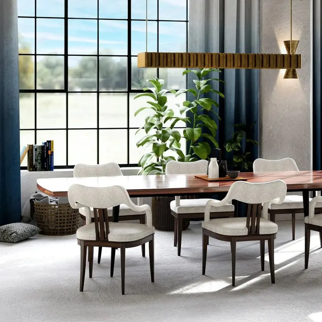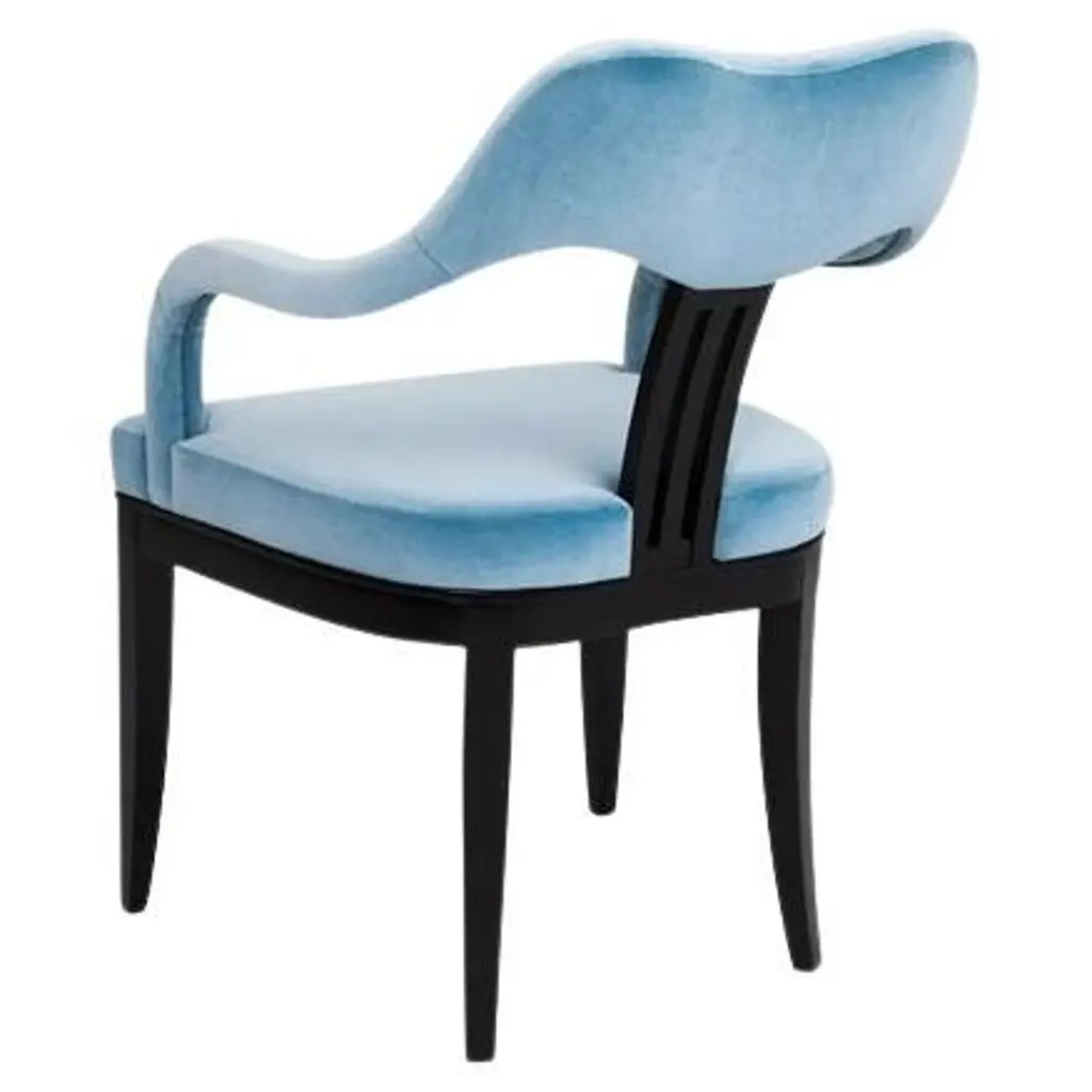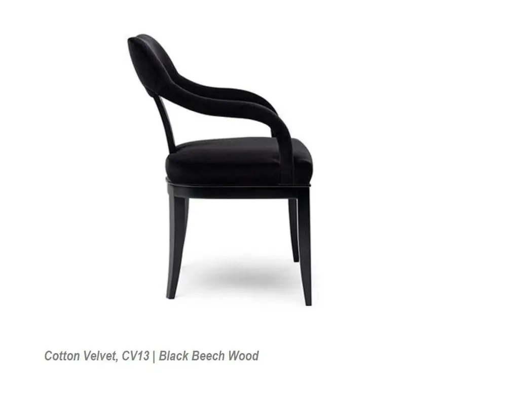 Inspired by French historical classicism, this dining chair features sculptural lines and intricately carved wood details. The chair is upholstered in luxurious velvet, adding a warm and inviting touch. It includes a footer that can be customized from our selection of finishes, making it a perfect addition to an eclectic dining space. Each piece is handmade by our master craftsmen and built to order.Specifications:Pinewood and beech wood applied on tension points, coated with polyurethane foam and fiber foam. Seat with standard foam made of polyurethane and an overlapping layer of fiber foam.Finishes:Feet: stained beech / mahogany / walnut / lacquerVarnish: matte / satin / high-glossFabric: Cotton Velvet, CV08COM:Fabric: 2 meters (m) 78.7 inches (in)Based on plain fabric, standard width 1.40 meters (m) 55 inches (in)Leather: 40 square feet Drawing inspiration from French historical classicism, this dining chair features sculptural lines and intricately carved wood details. Upholstered in sumptuous velvet, it exudes warmth and invites comfort. Customizable with a footer from our selection of finishes, this intricate design complements eclectic dining spaces beautifully. Crafted to order and meticulously handmade by our master craftsmen, it epitomizes exceptional craftsmanship and attention to detail.Contact us to enquire about COM/COL production, requirements and material shipping instructions.Please contact us if you have any questions about customization and pricing. We will be glad to check with the factory’s technical team if sizes, finishes, and colors can be customized. We do our best to expedite production and to ship and deliver product within the listed lead time, however current lead times might be longer due to global shipping backlog and delays. These delays are out of our control and cannot be a reason to cancel an order.