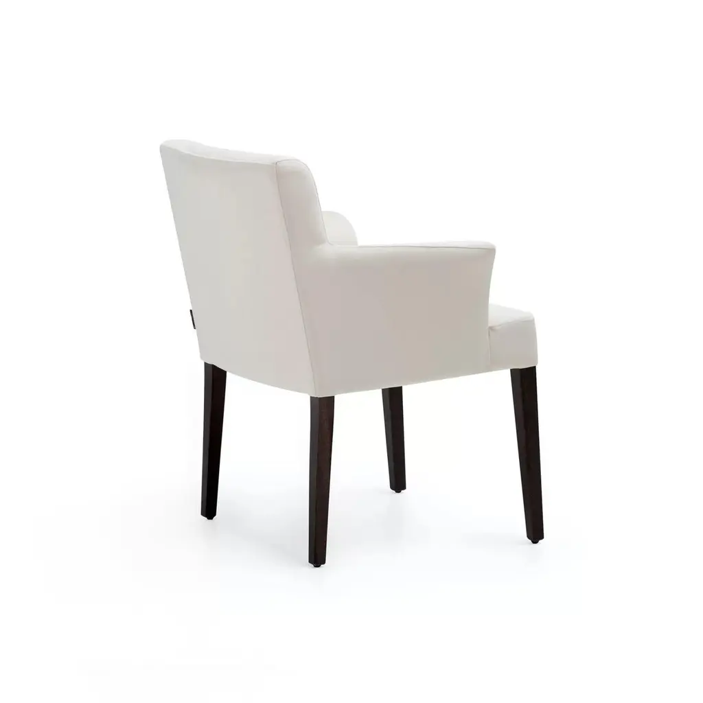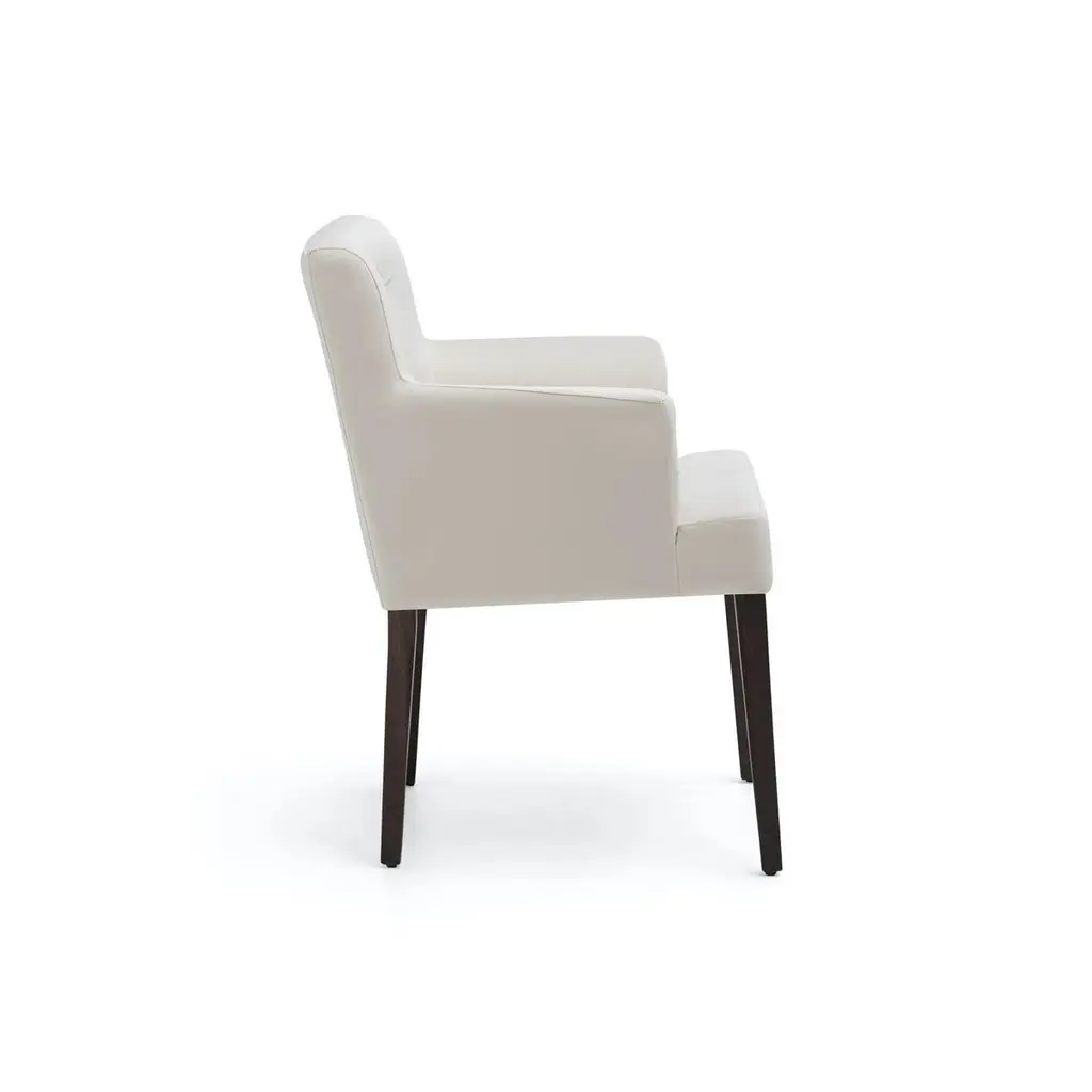 Upholstered armchair of classic style. Body of contained dimensions, and straight lines that seek to contrast with the curves of the interior of the arm and back, which provide a touch of warmth and comfortable interior. The classic appearance is achieved thanks to the resource of the capitoné, a technique that has been transferred since the eighteenth century and that always brings a refined and elegant appearance.Upholstery: LeatherLegs: Solid woodHandmade in Europe.Please contact us if you have any questions about customization and pricing. We will be glad to check with the factory’s technical team if sizes, finishes, and colors can be customized.