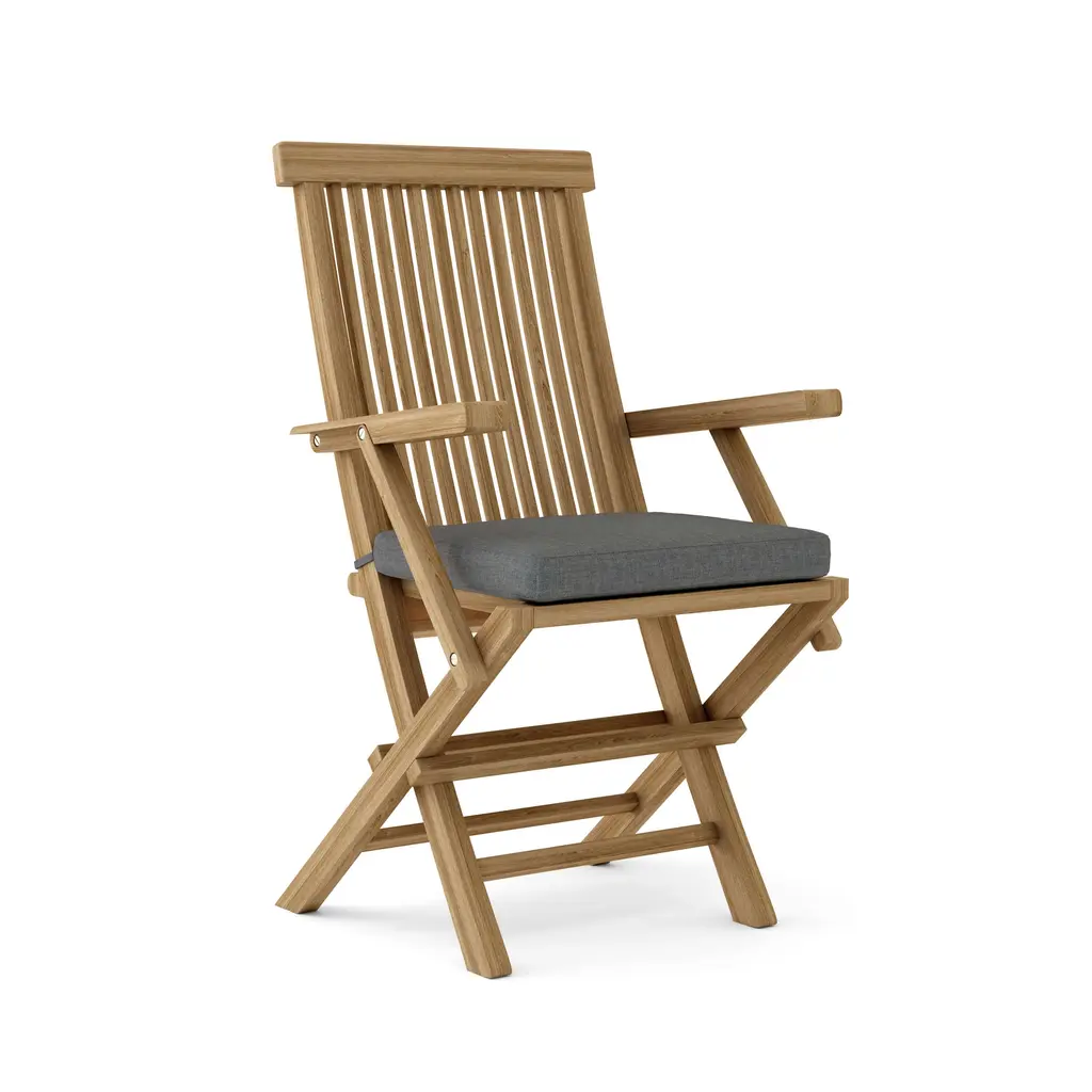 Classic Teak Outdoor Dining Chair - Foldable (Set Of 2) - Cast Slate