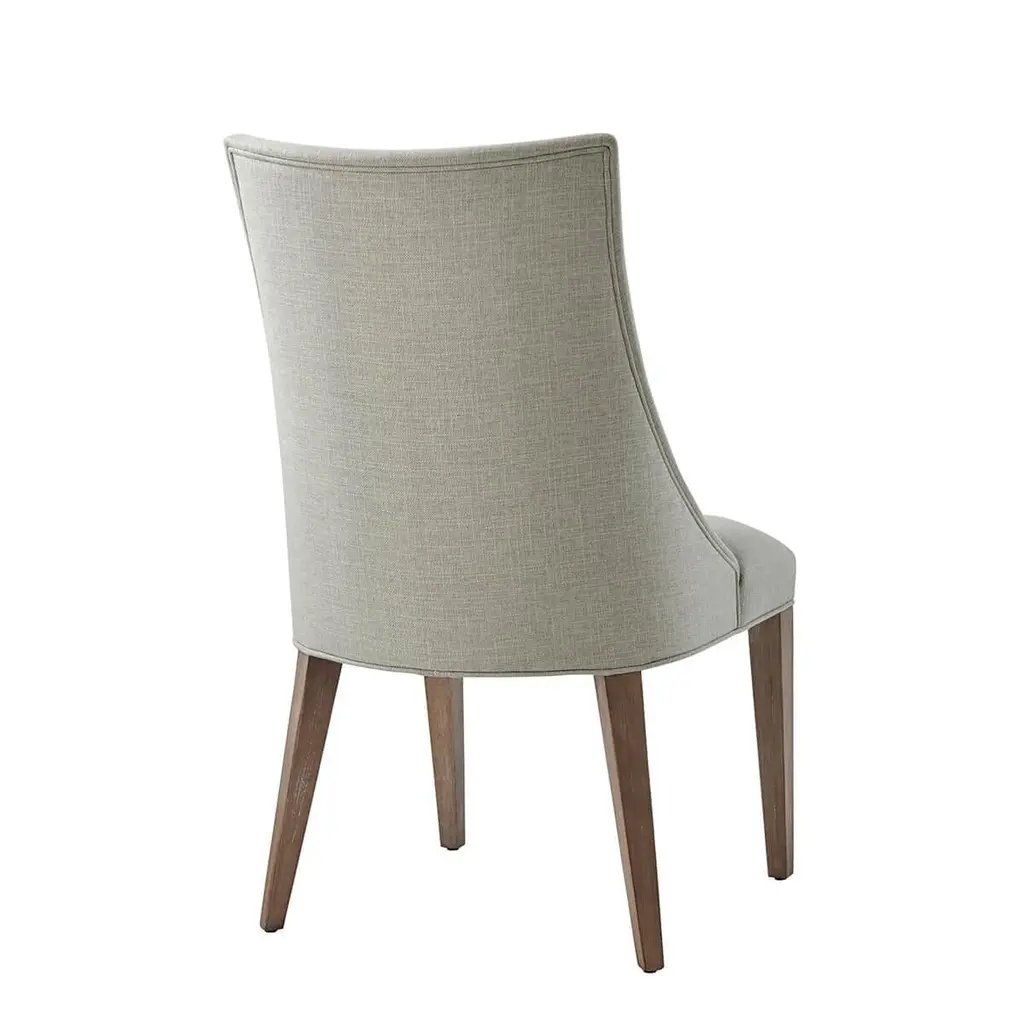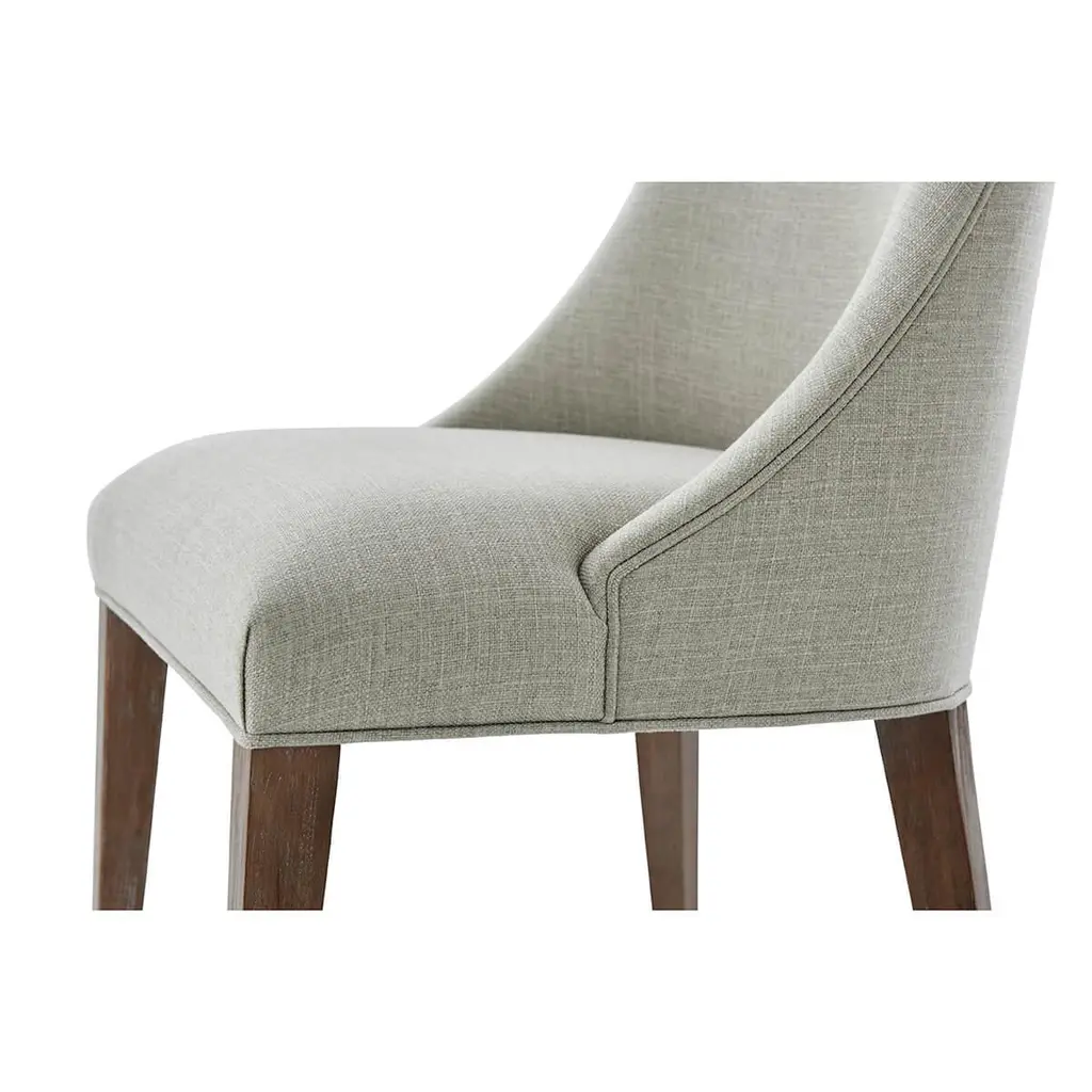 With an upholstered back, arm, and tight seat cushion, in the Draper performance fabric, with traditional square tapered legs in our light mangrove finish. Dimensions: 21" W x 25" D x 40" HSeat height: 19.5" Arm height: 24.5"Inside seat depth: 18"