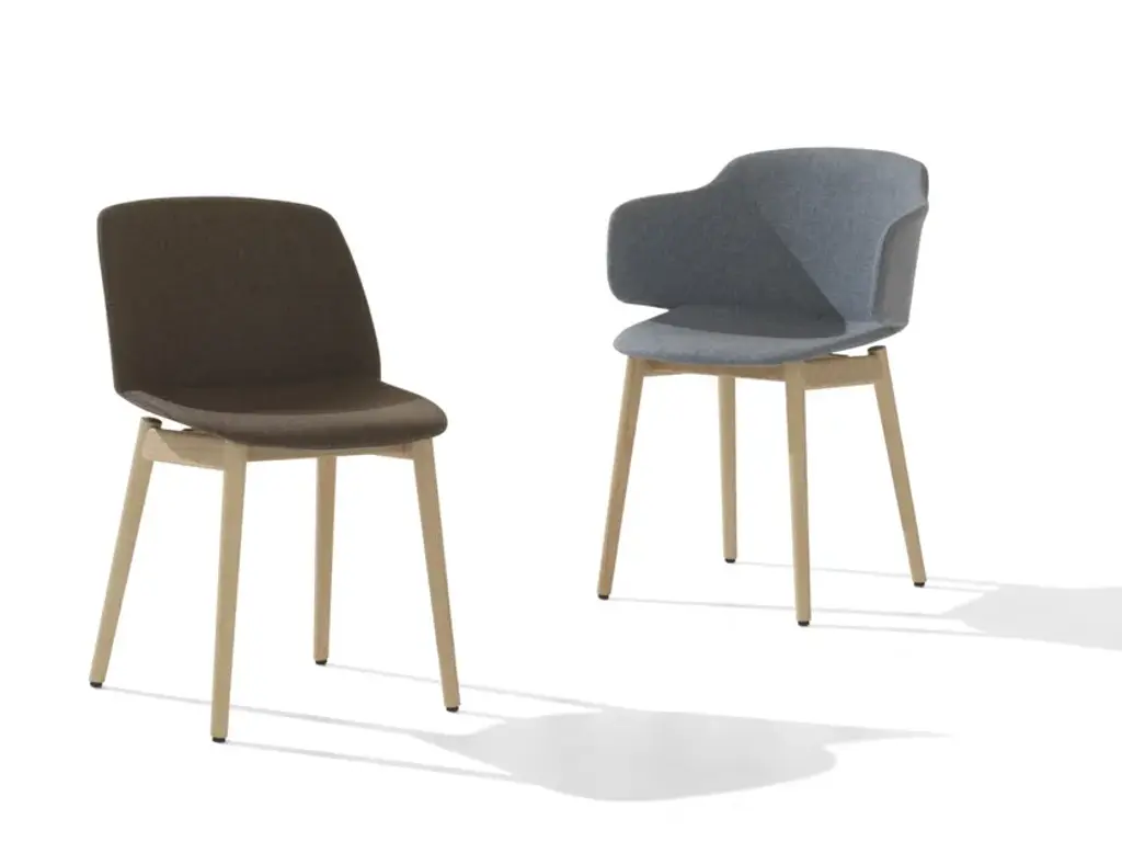 Classy 1095M is a chair with ashwood base, upholstered shell and covered in fabric.In Classy, practical elements and an unusual look are brought together in the distinctive representation of a gently shaped shell, guaranteeing the highest standards of comfort and ergonomics. The elegant and versatile design are further highlighted by the alternating matt and glossy surfaces. The collection, featuring a chair, chair with armrests and stool with polypropylene shell, is further enriched. The shell is now proposed in the version with fabric-upholstered seat, available on all existing frames. The Classy collection thus becomes the most extensive in the catalogue, offering a broad range of solutions and a free choice of pairings. For indoor and outdoor spaces.