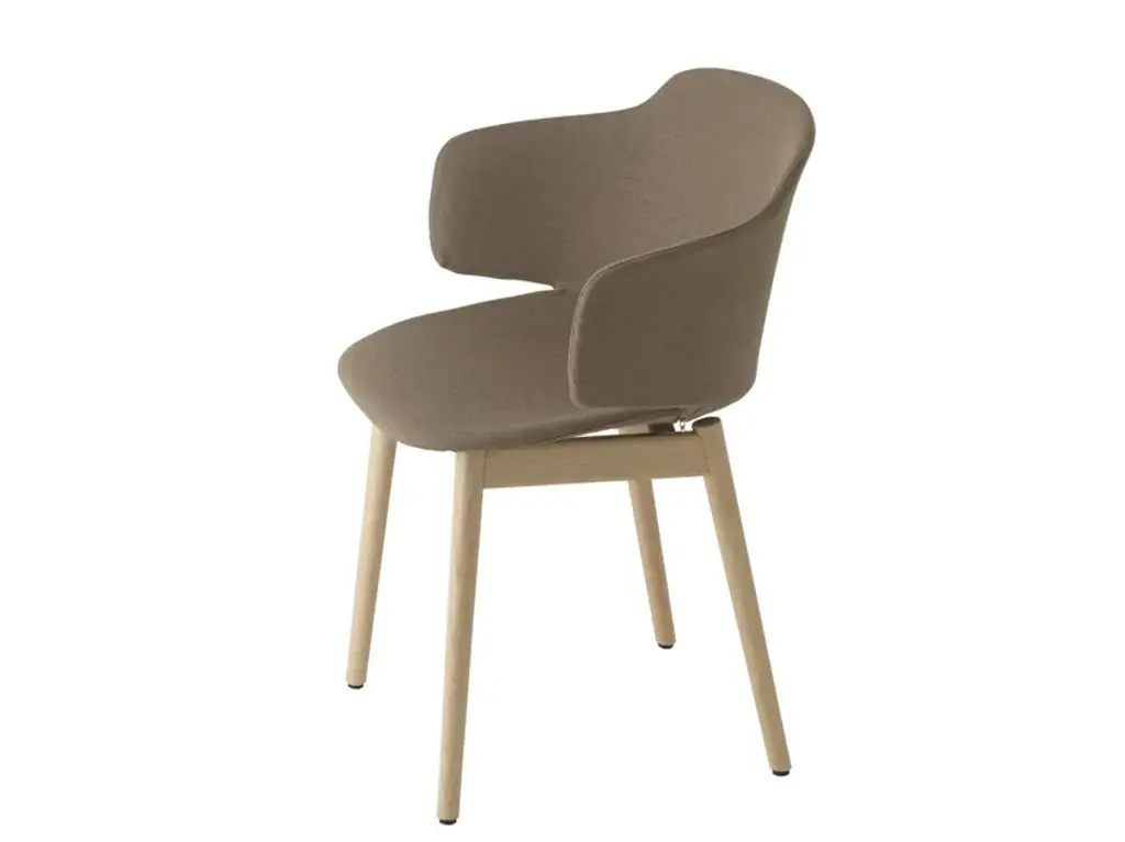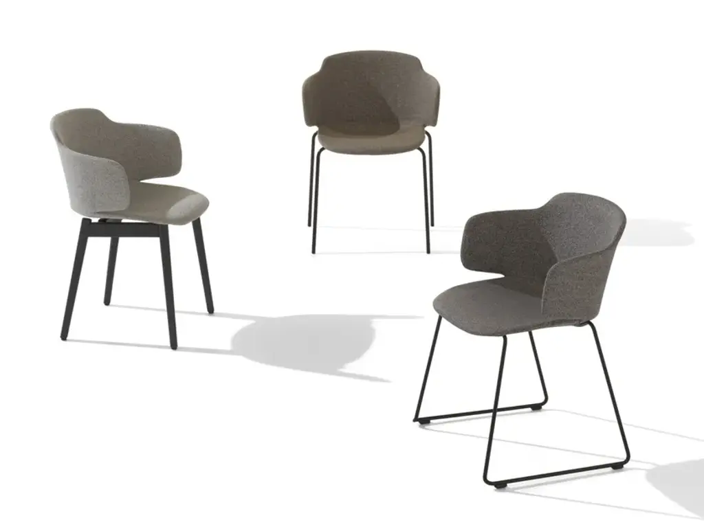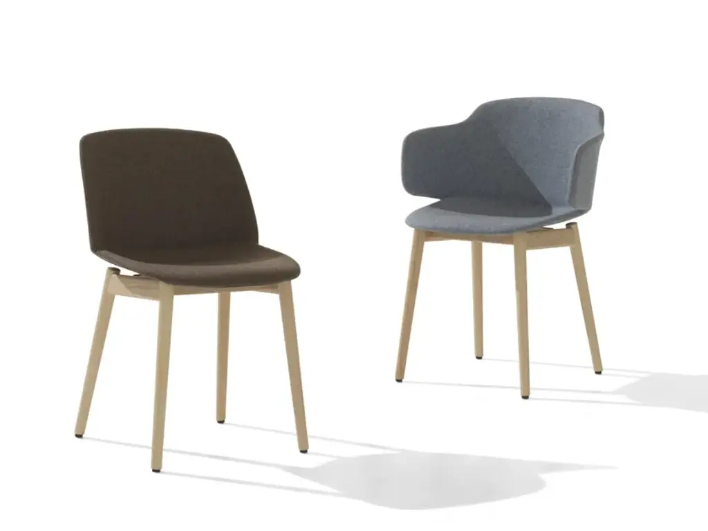 Classy 1096M is a chair with armrests, made with ashwood frame, and upholstered shell, covered in fabric.In Classy, practical elements and an unusual look are brought together in the distinctive representation of a gently shaped shell, guaranteeing the highest standards of comfort and ergonomics. The elegant and versatile design are further highlighted by the alternating matt and glossy surfaces. The collection, featuring a chair, chair with armrests and stool with polypropylene shell, is further enriched. The shell is now proposed in the version with fabric-upholstered seat, available on all existing frames. The Classy collection thus becomes the most extensive in the catalogue, offering a broad range of solutions and a free choice of pairings. For indoor and outdoor spaces.