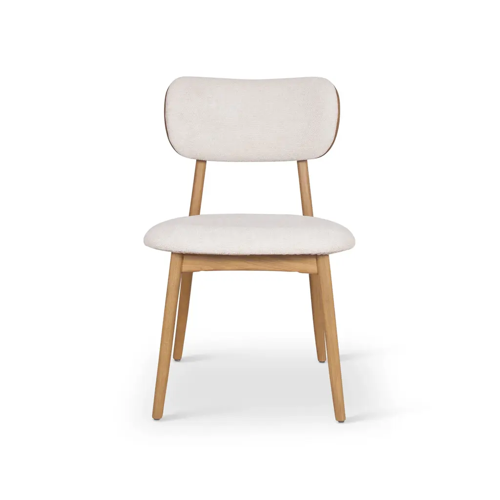 Combining a timeless silhouette with modern Brazilian design, the Claudia Side Chair from Urbia brings understated elegance to any room. Crafted in Brazil, this versatile chair features a solid Tauari wood frame and a gently curved back for comfortable support. The soft chenille upholstery has a sophisticated tweed-like texture, complementing the chair’s sleek yet soft lines. A perfect fusion of functional comfort and refined style, it's a welcoming addition to any dining room or entryway. Highlights: