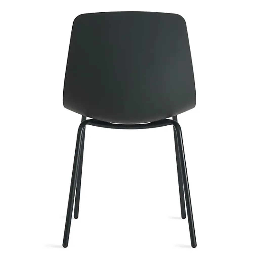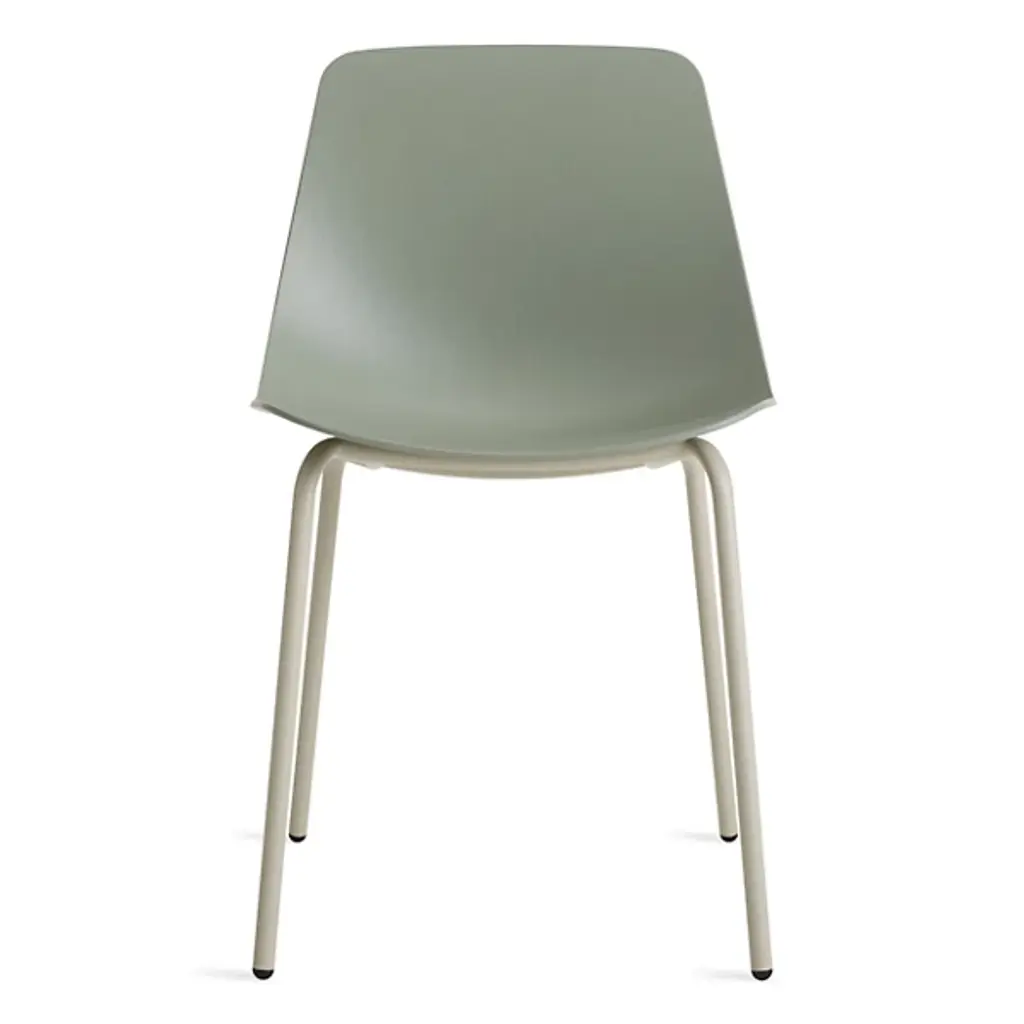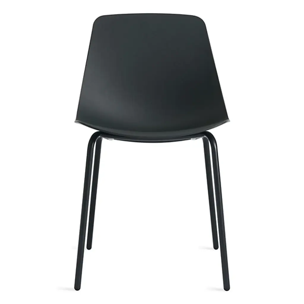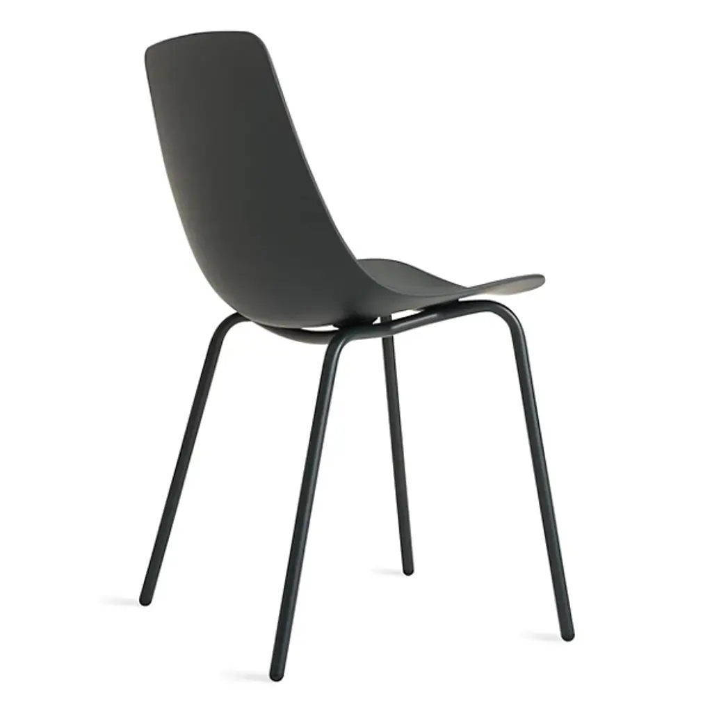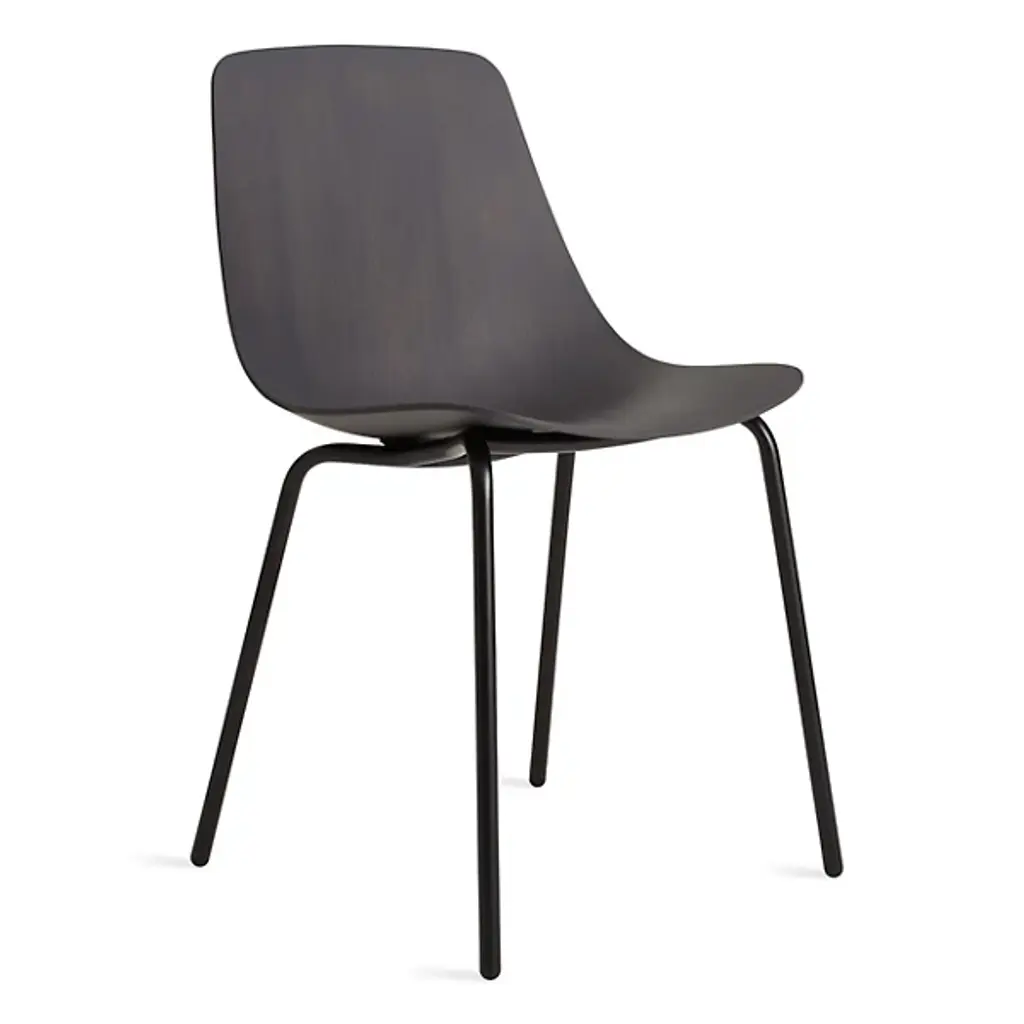 Straight-forward, but stylish. The Clean Cut Dining Chair by Blu Dot presents a minimal shell chair design with subtle touches of flair that can blend in or enhance the look of any dining space or office. 3D bent ply with wood veneers curves to form a comfortable seat. Powder-coated steel legs create a robust support system while remaining simple and light. Modern, utilitarian, and perfect for any décor, this chair stands out from the rest.