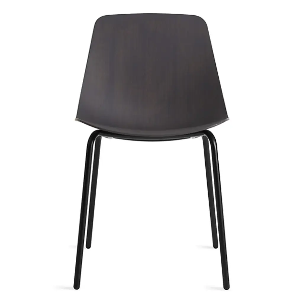 Straight-forward, but stylish. The Clean Cut Dining Chair by Blu Dot presents a minimal shell chair design with subtle touches of flair that can blend in or enhance the look of any dining space or office. 3D bent ply with wood veneers curves to form a comfortable seat. Powder-coated steel legs create a robust support system while remaining simple and light. Modern, utilitarian, and perfect for any décor, this chair stands out from the rest.