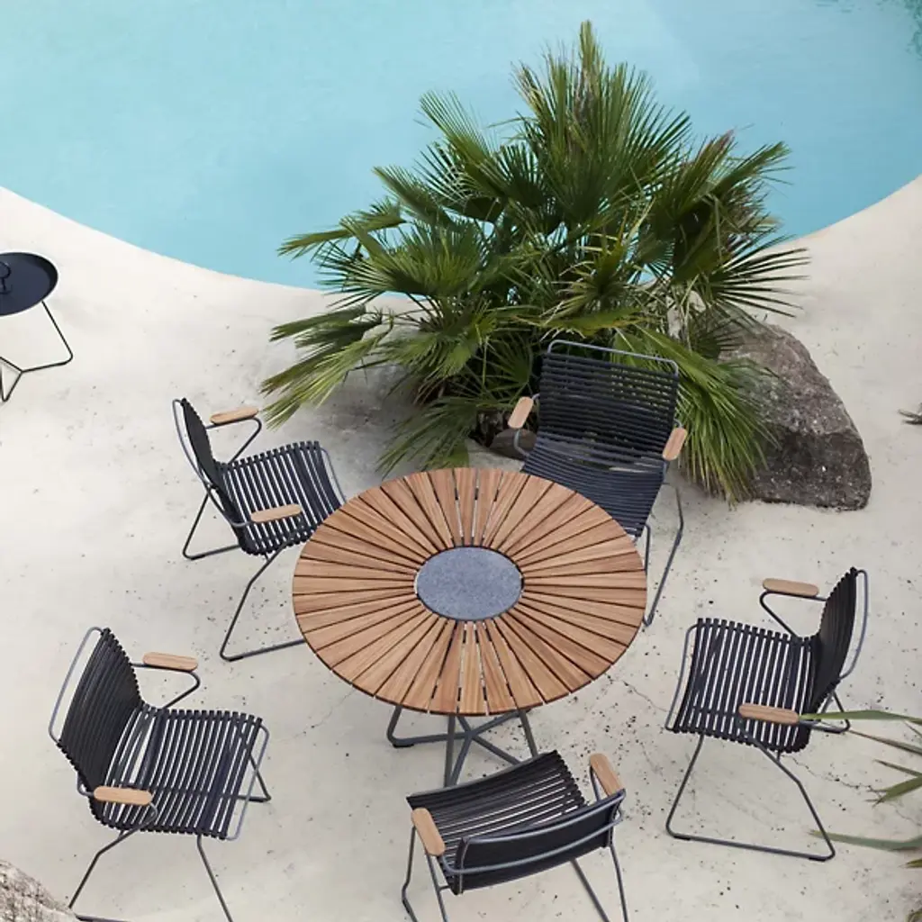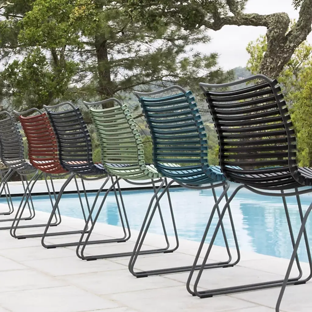 Bring a leisurely aesthetic to your dining room with the Click Outdoor Dining Chair by Houe. Steel has been crafted into an intricately contouring frame. This chair boasts lovely bamboo armrests for support while seated at your table. Your chair is lined with relieving lamellas so that you can rest in a state of comfort without the need for a cushion. These lamellas are interchangeable so that you can give your chair a customized look.