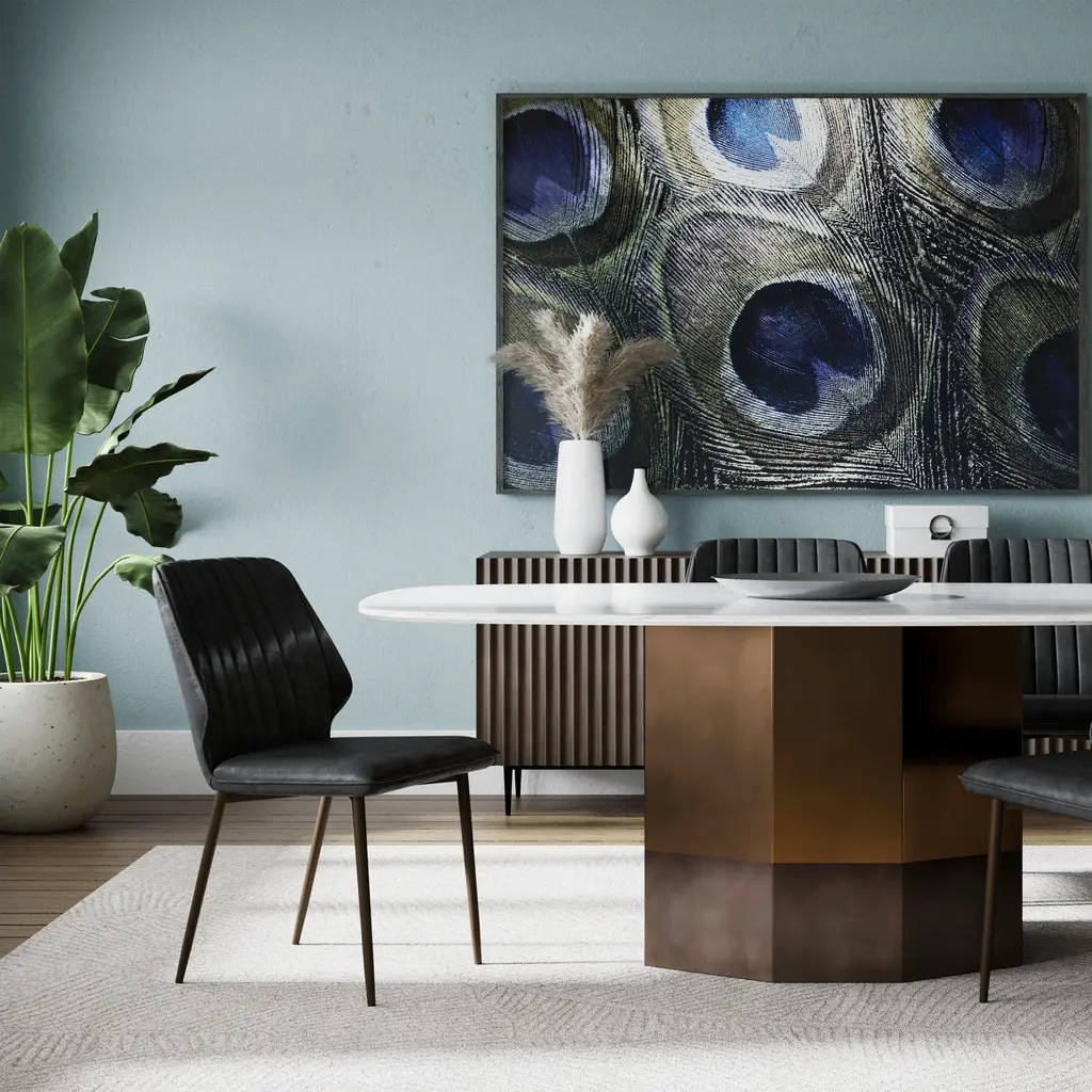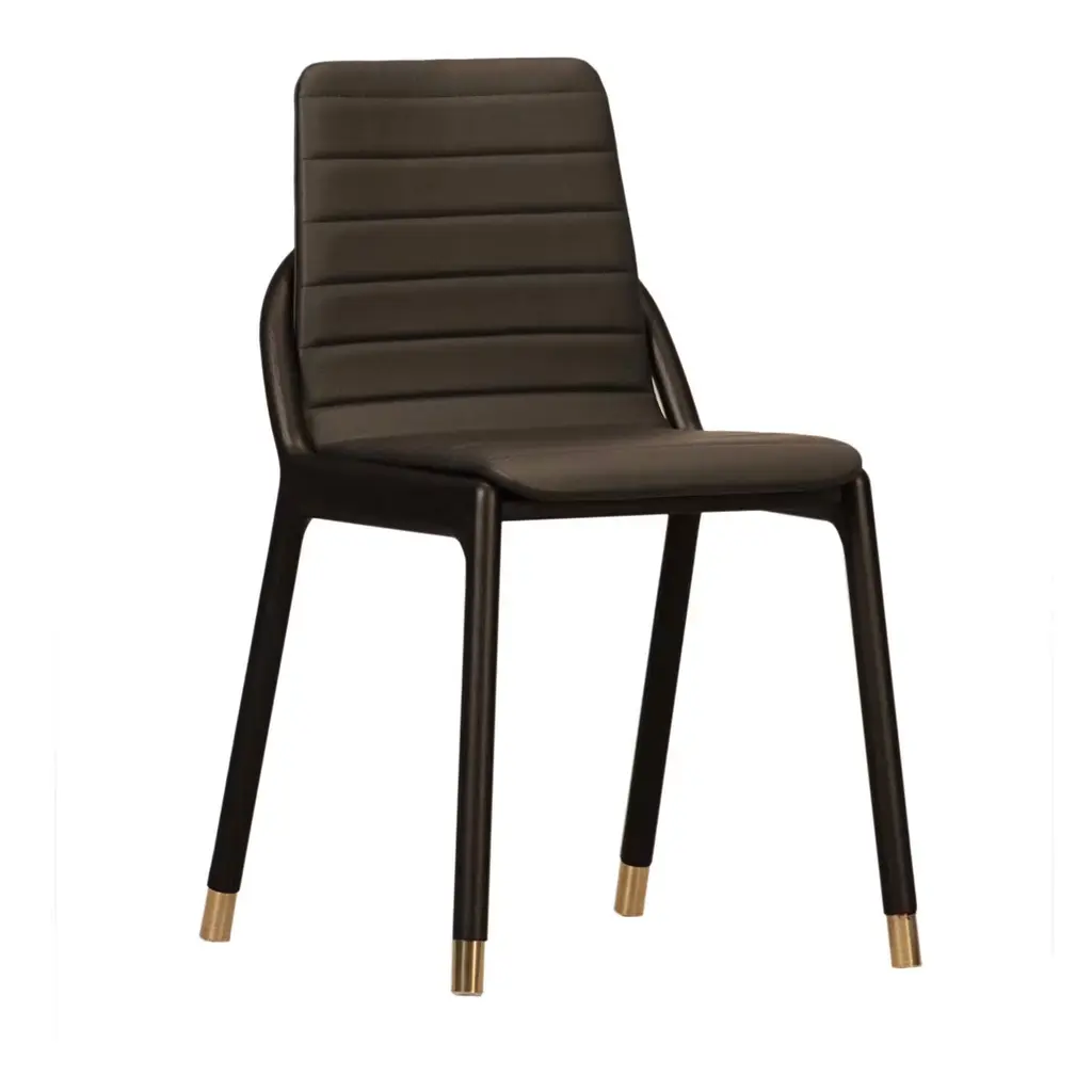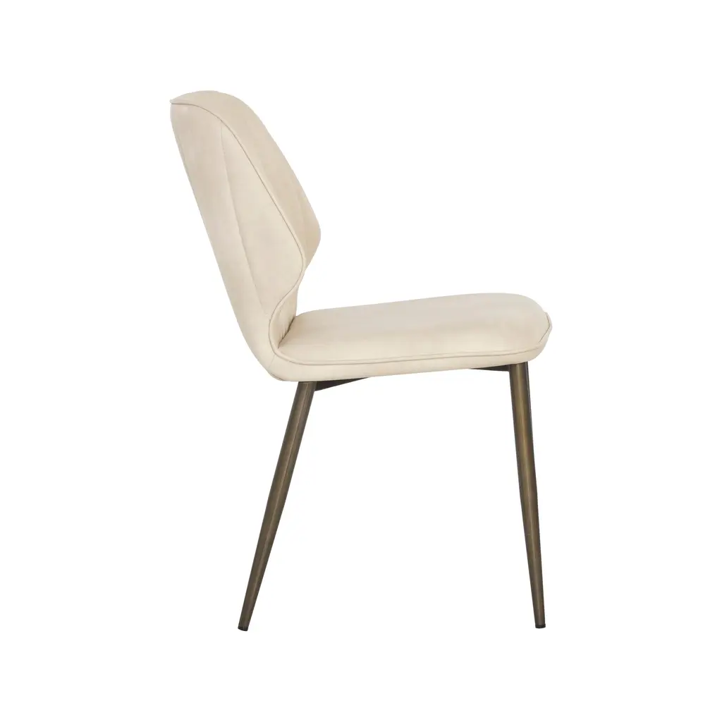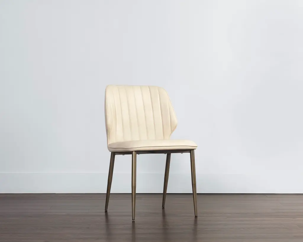 Elevate your dining experience with the Clinton Dining Chair (Set of 2) from Sunpan. Crafted with faux leather and bronze iron legs, these industrial-inspired chairs exude elegance and luxury. Enjoy the feminine touch of channel tufting as you dine, while gently padding cradles you in comfort. Each piece is unique due to the nature of faux leather, making it a true work of art. Highlights