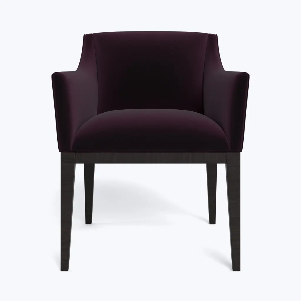 Cloè is a fabric easy chair. Fabric: City Velvet col. 080.Structure in beech wood, seat and back in fire-resistant expanded polyurethane. Feet upholstered. Handle in dark bronze matt finishing, optionally. Non-removable cover. An easy chair with a deeply casual chic soul, unique in its simplicity. Cloè dining is a perfect piece of furniture for every room in the house, not only in the dining room. The simplicity of the lines is enhanced by the possibility to cover the feet in leather, fabric or leave them in the natural walnut. In addition, you can also choose the version with or without rear handle in dark bronze matt finishing. A piece of Italian design modeled according to your taste and your style needs