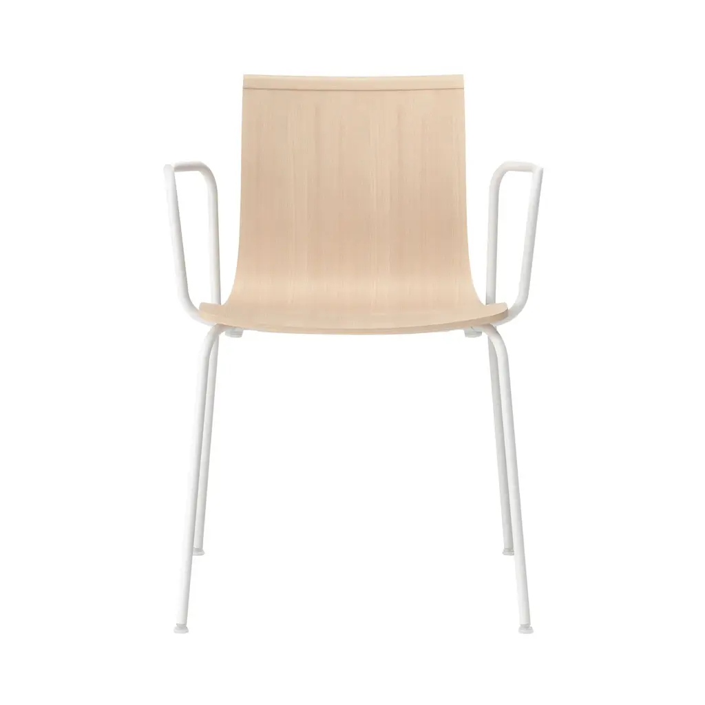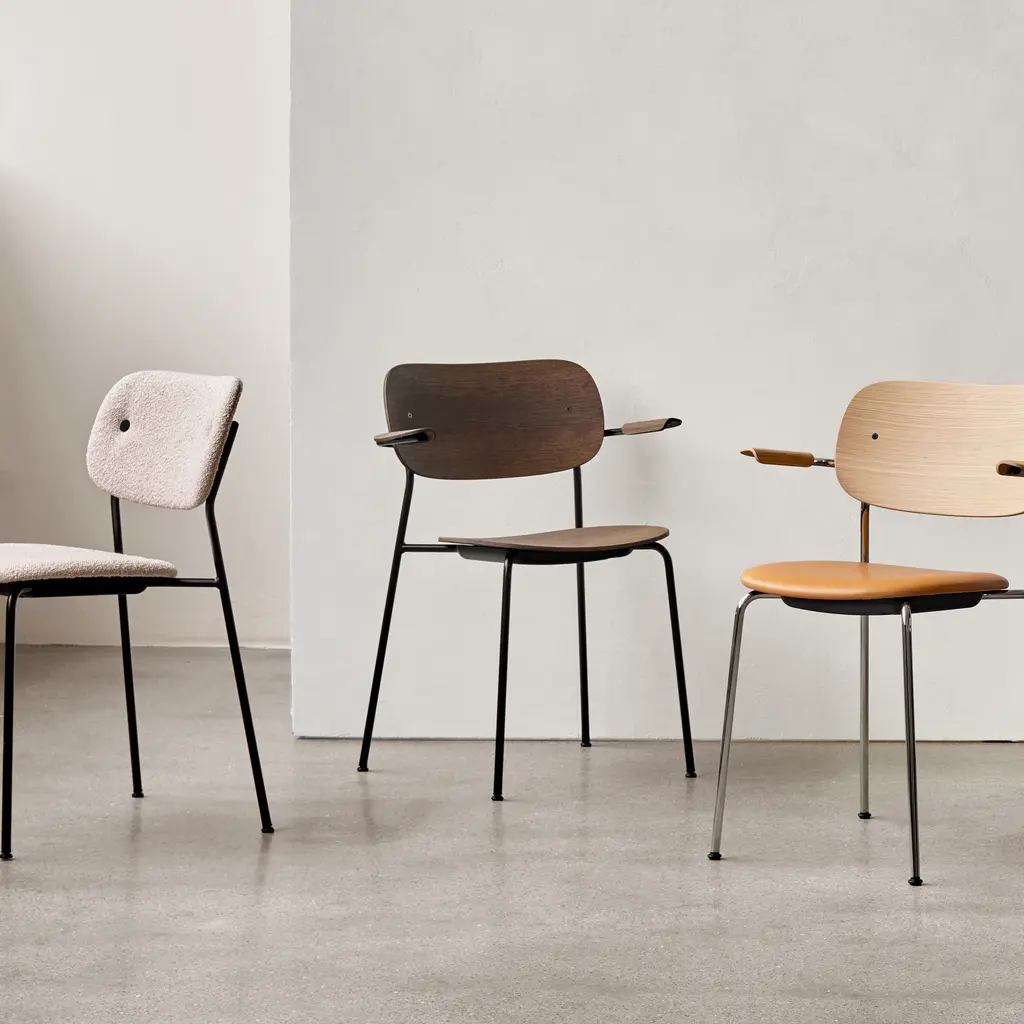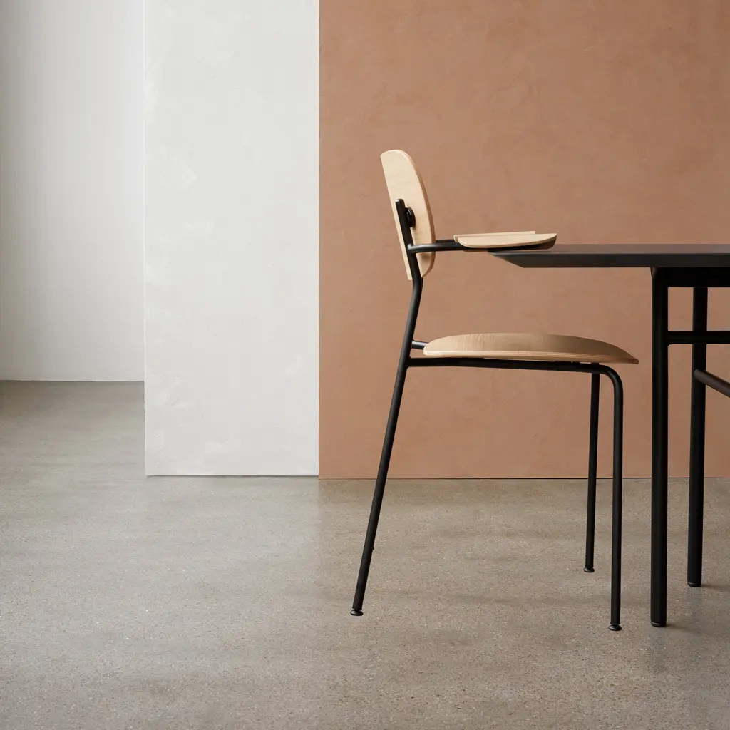 The addition of armrests upgrades the Co comfort factor in the oak veneer seating that sprang from a collaboration between London's shared-workplace pioneers The Office Group and Norm Architects. Lightweight but demonstrably sturdy, the chair's wide wood back allows for freedom of movement and it is comfortably angled for lumbar support.