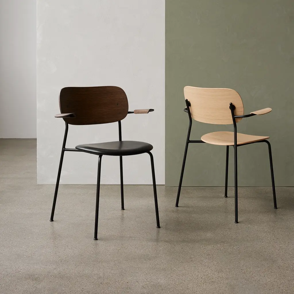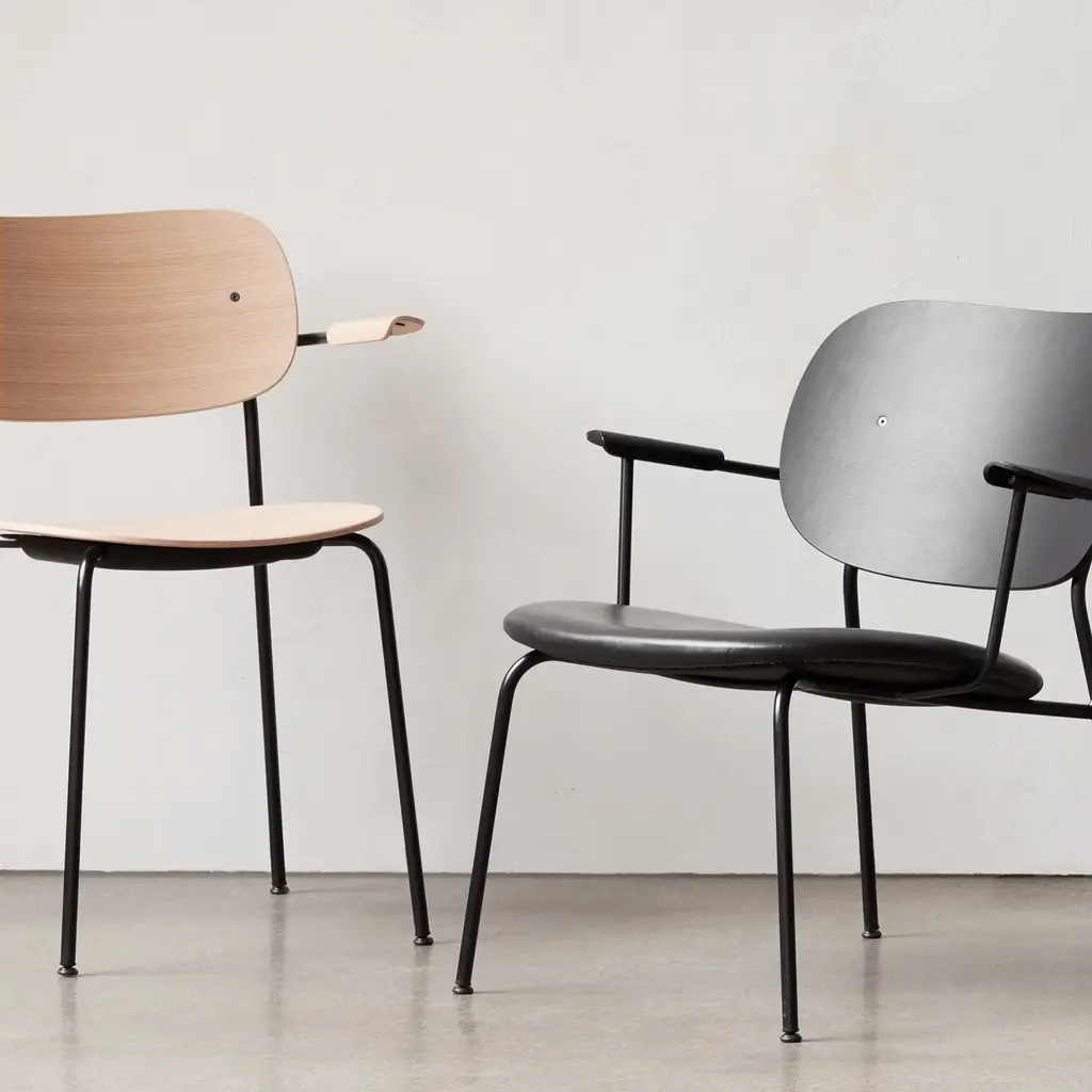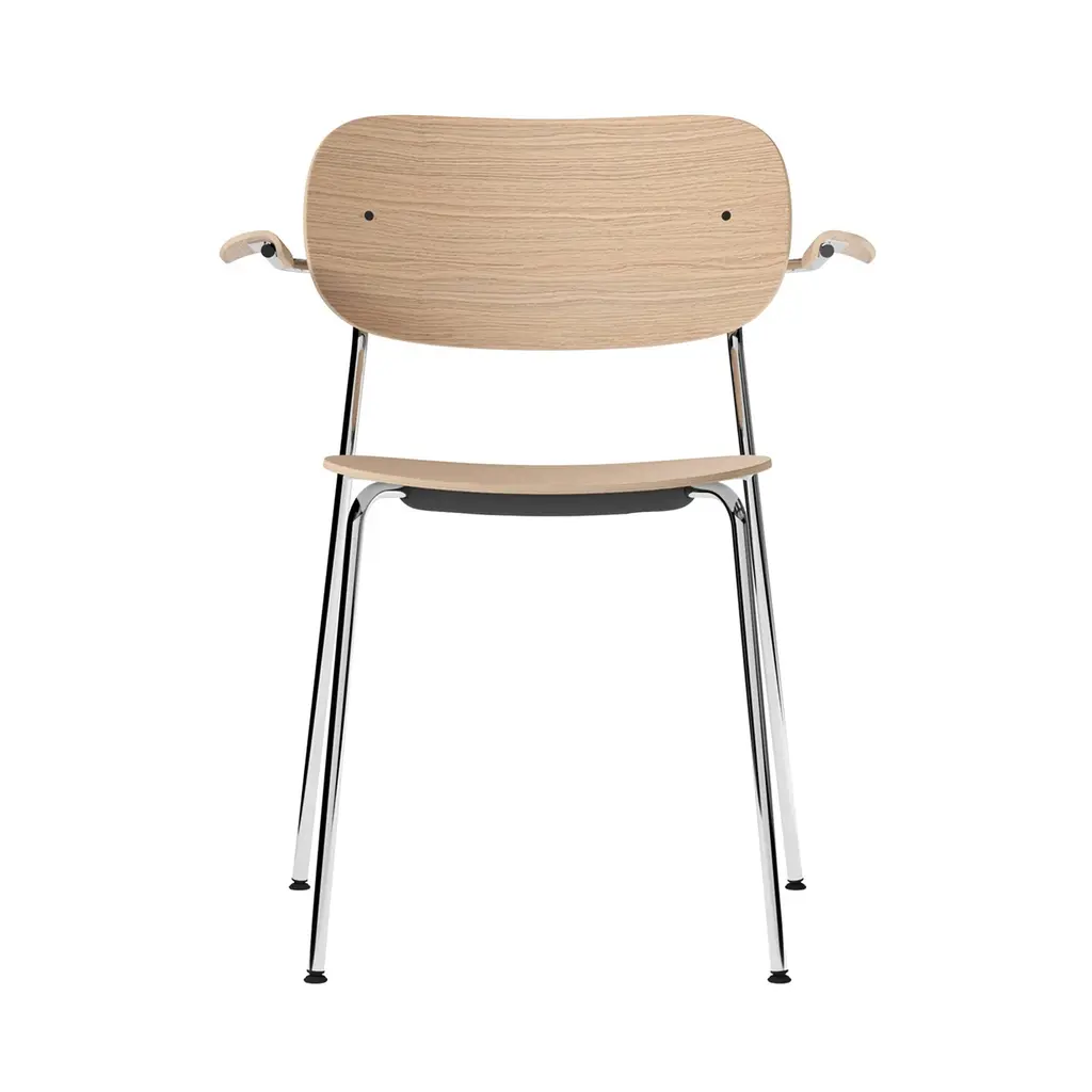The addition of armrests upgrades the Co comfort factor in the oak veneer seating that sprang from a collaboration between London's shared-workplace pioneers The Office Group and Norm Architects. Lightweight but demonstrably sturdy, the chair's wide wood back allows for freedom of movement and it is comfortably angled for lumbar support.