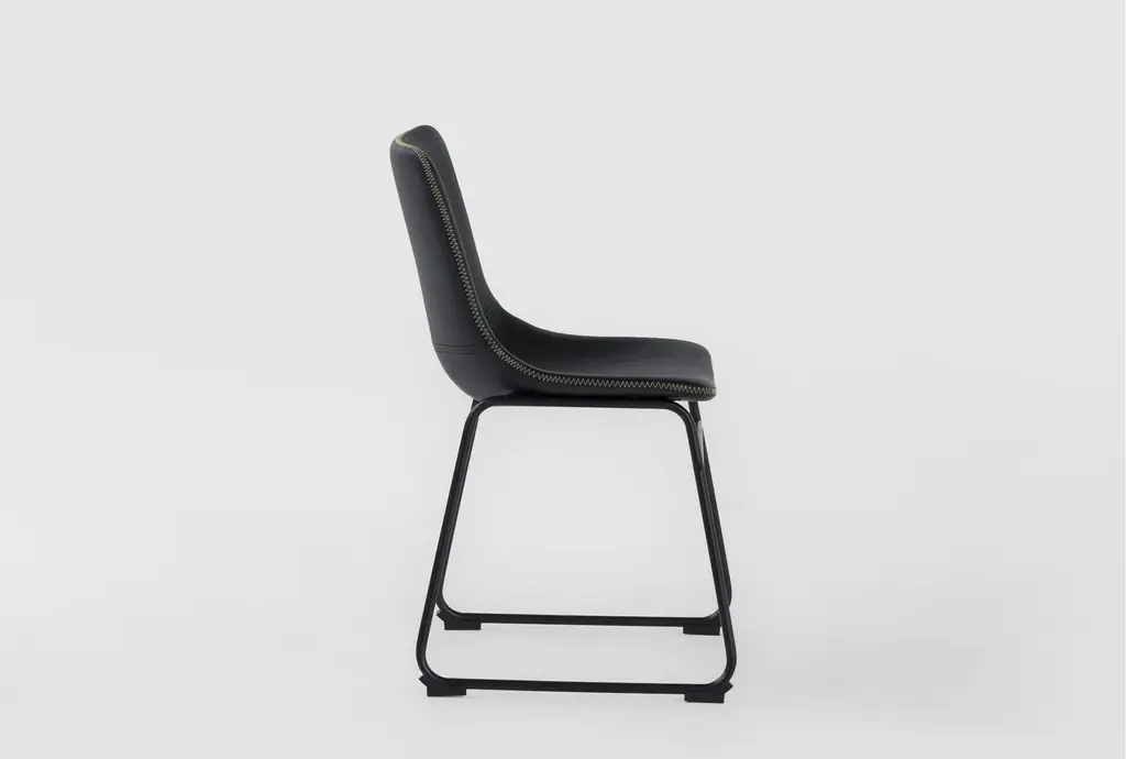 Enhance your dining experience with the Cobbler Black Faux Leather Bucket Seat With Baseball Stitch Dining Side Chair Set Of 2. These modern chairs feature a sleek black faux leather upholstery that adds a touch of sophistication to any dining room. The bucket seat design and tight back provide comfort and support, making them perfect for long meals and gatherings.