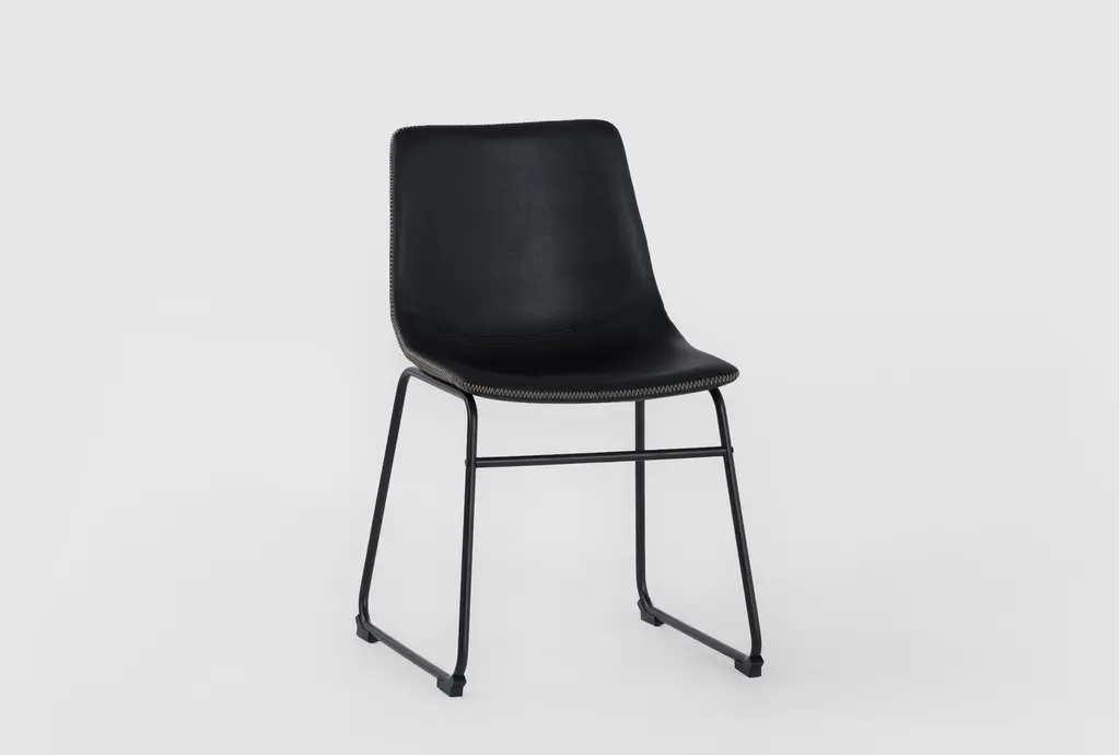 Cobbler Black Faux Leather Bucket Seat With Baseball Stitch Dining Side Chair Set Of 2
