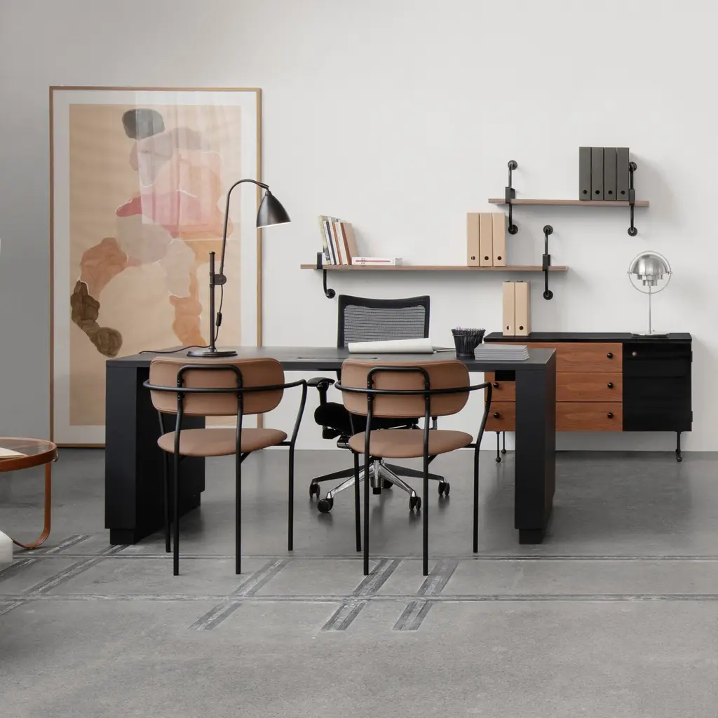 Irrepressible Coco makes a notable dining companion. Designer Thomas Lykke of OEO borrows references to industrial simplicity, haute couture, and the Bauhaus for his seating, not surprising given his background in fashion and magazines. A simple but memorable chair, and a highly comfortable one, with its upholstered seat and curved backrest, for home and contract interiors alike.