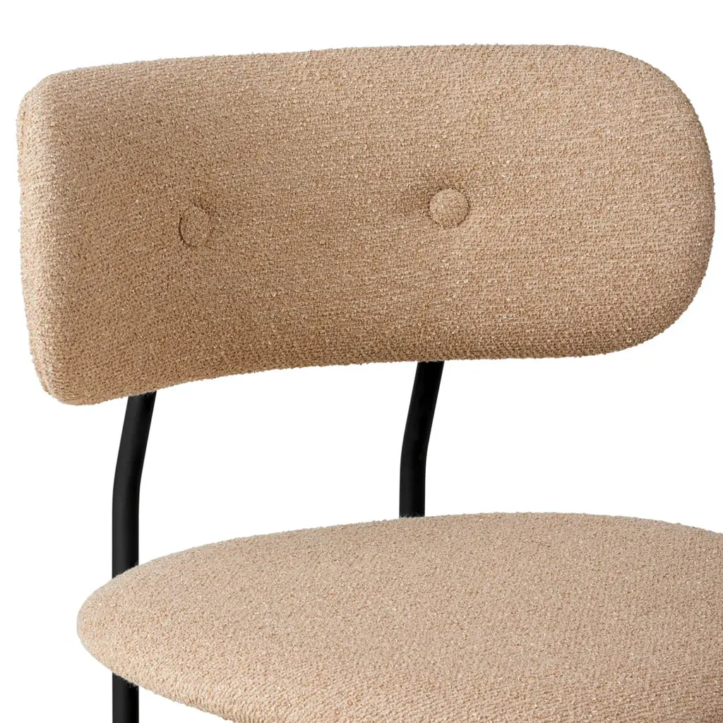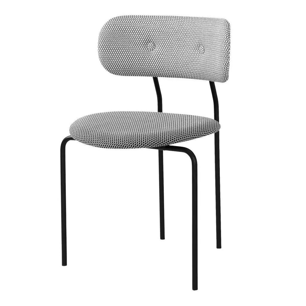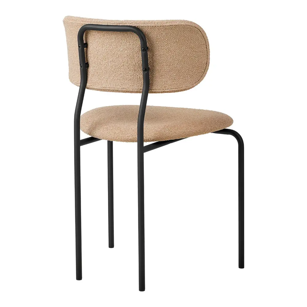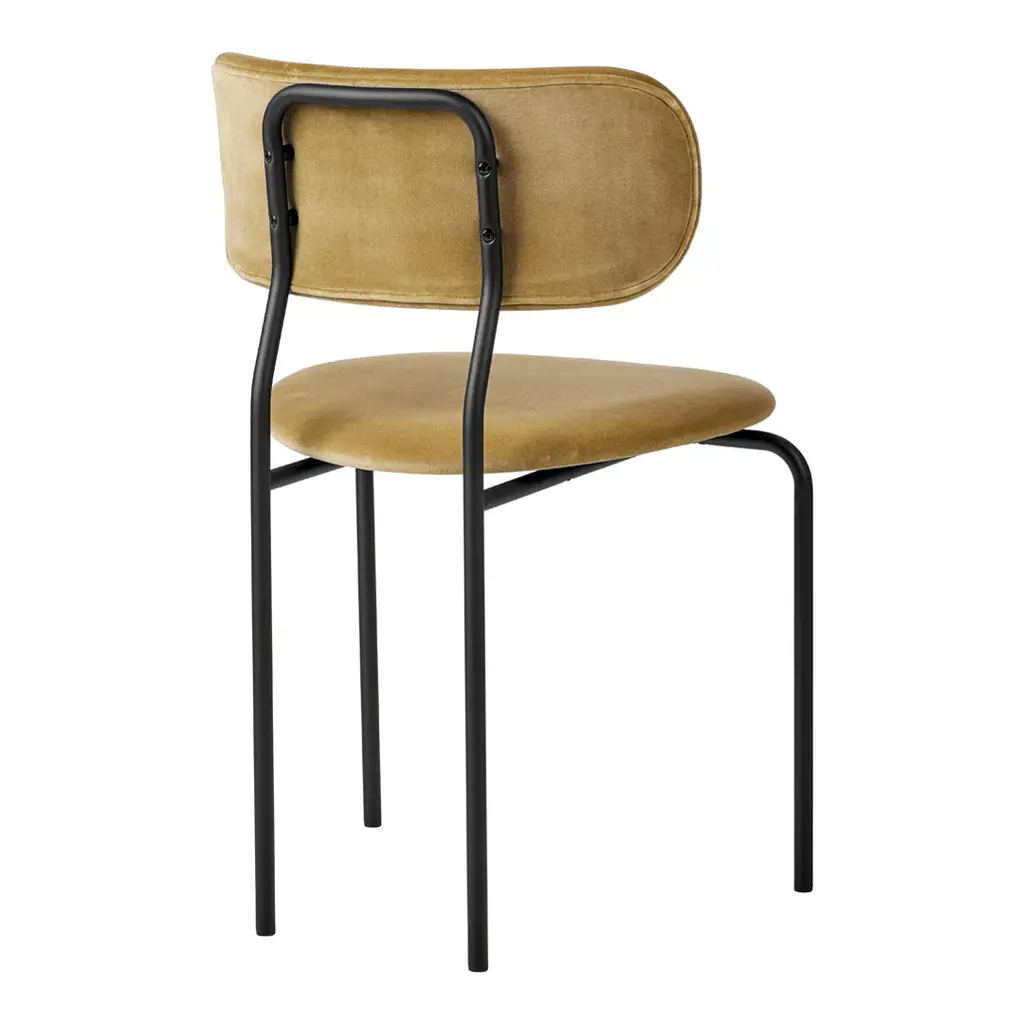 The Coco Chair is designed by OEO Studio with an eye to create a charismatic signature design that offers a high level of comfort. The chair borrows references to the industrial simplicity, fashion and the Bauhaus, but the inspiration of the design comes from a desire to create a simple yet elegant chair with a minimal use of materials and tools without compromising the design and character. The result is a post-industrial look that is balanced by the chairâ€s elegant silhouette where the soft curves render a feminine and playful touch. The feminine expression is also what have given the chair its name Coco, which is filled with character and carries a lot of references. The chair has its own unique personality and friendly appearance that makes it blend naturally into various settings from pared-down ambiances to grand and refined universes. The high level of comfort is, among other features, expressed in the backrests curvy shape, that embraces and relieves the back of the one sitting in the chair. The design also allows the chair to be both playful and loud to more sophisticated and elegant, which gives the chair an almost human character, makes it highly recognizable, enhances its uniqueness and makes it easy to implement in both private homes as well as restaurants, cafes etc. Available with black base in a variety of upholsteries. Plastic glides included, felt glides available upon request.