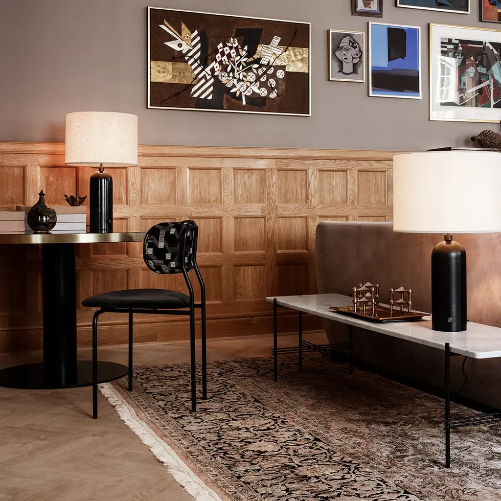 The Coco Chair is designed by OEO Studio with an eye to create a charismatic signature design that offers a high level of comfort. The chair borrows references to the industrial simplicity, fashion and the Bauhaus, but the inspiration of the design comes from a desire to create a simple yet elegant chair with a minimal use of materials and tools without compromising the design and character. The result is a post-industrial look that is balanced by the chairâ€s elegant silhouette where the soft curves render a feminine and playful touch. The feminine expression is also what have given the chair its name Coco, which is filled with character and carries a lot of references. The chair has its own unique personality and friendly appearance that makes it blend naturally into various settings from pared-down ambiances to grand and refined universes. The high level of comfort is, among other features, expressed in the backrests curvy shape, that embraces and relieves the back of the one sitting in the chair. The design also allows the chair to be both playful and loud to more sophisticated and elegant, which gives the chair an almost human character, makes it highly recognizable, enhances its uniqueness and makes it easy to implement in both private homes as well as restaurants, cafes etc. Available with black base in a variety of upholsteries. Plastic glides included, felt glides available upon request.