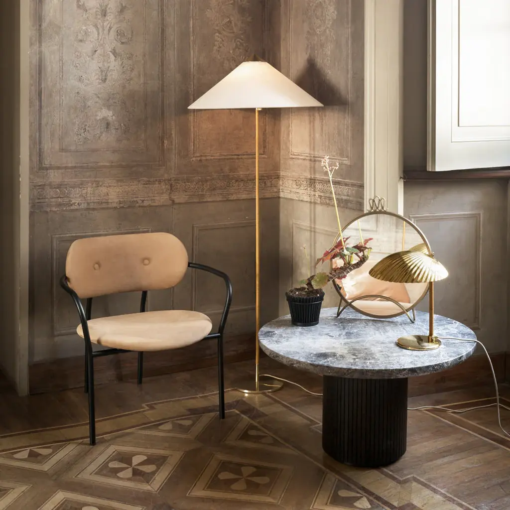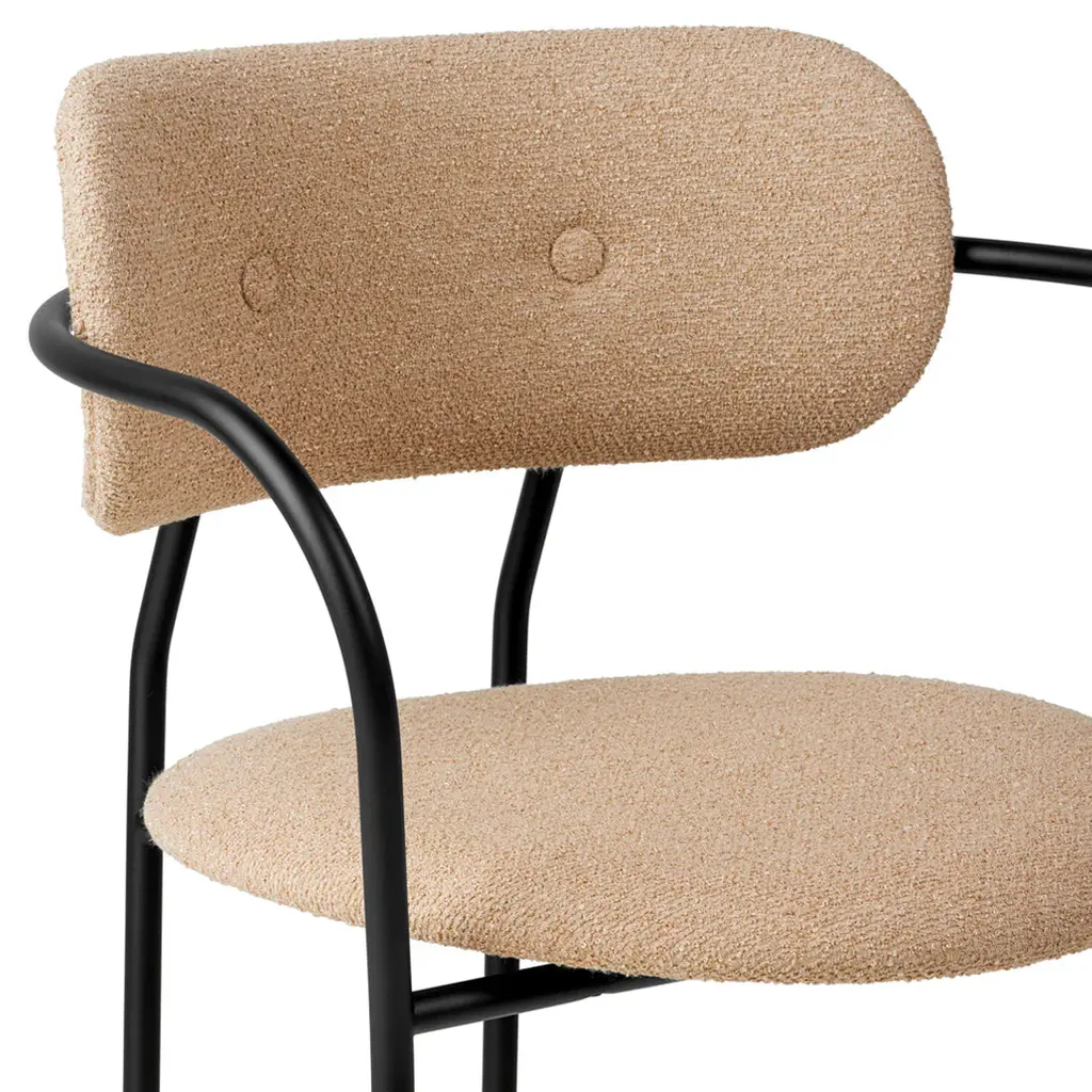 The Coco Chair is designed by OEO Studio with an eye to create a charismatic signature design that offers a high level of comfort. The chair borrows references to the industrial simplicity, fashion and the Bauhaus, but the inspiration of the design comes from a desire to create a simple yet elegant chair with a minimal use of materials and tools without compromising the design and character. The result is a post-industrial look that is balanced by the chairâ€s elegant silhouette where the soft curves render a feminine and playful touch. The feminine expression is also what have given the chair its name Coco, which is filled with character and carries a lot of references. The chair has its own unique personality and friendly appearance that makes it blend naturally into various settings from pared-down ambiances to grand and refined universes. The high level of comfort is, among other features, expressed in the backrests curvy shape, that embraces and relieves the back of the one sitting in the chair. The design also allows the chair to be both playful and loud to more sophisticated and elegant, which gives the chair an almost human character, makes it highly recognizable, enhances its uniqueness and makes it easy to implement in both private homes as well as restaurants, cafes etc. Available with black base in a variety of upholsteries. Plastic glides included, felt glides available upon request.