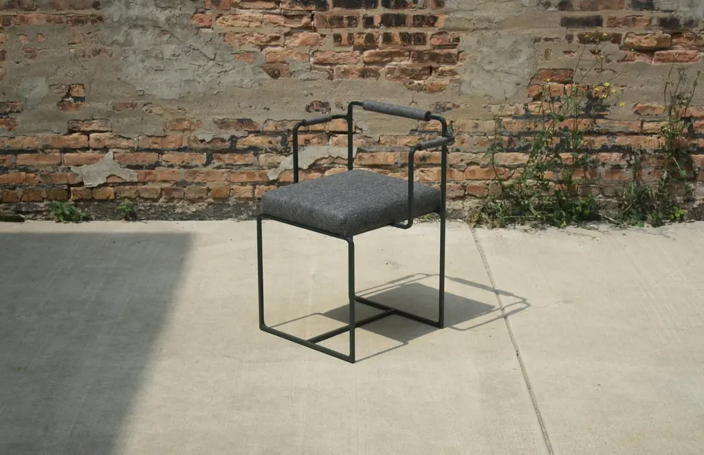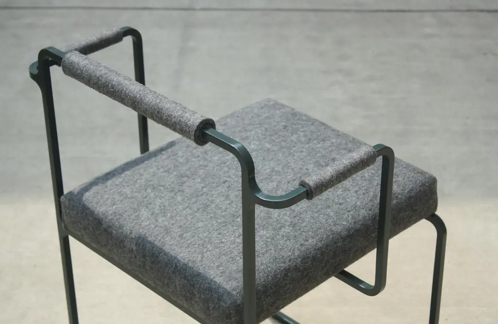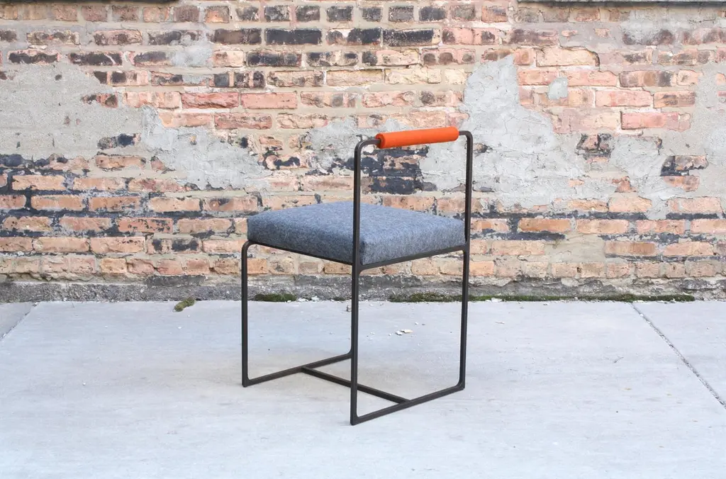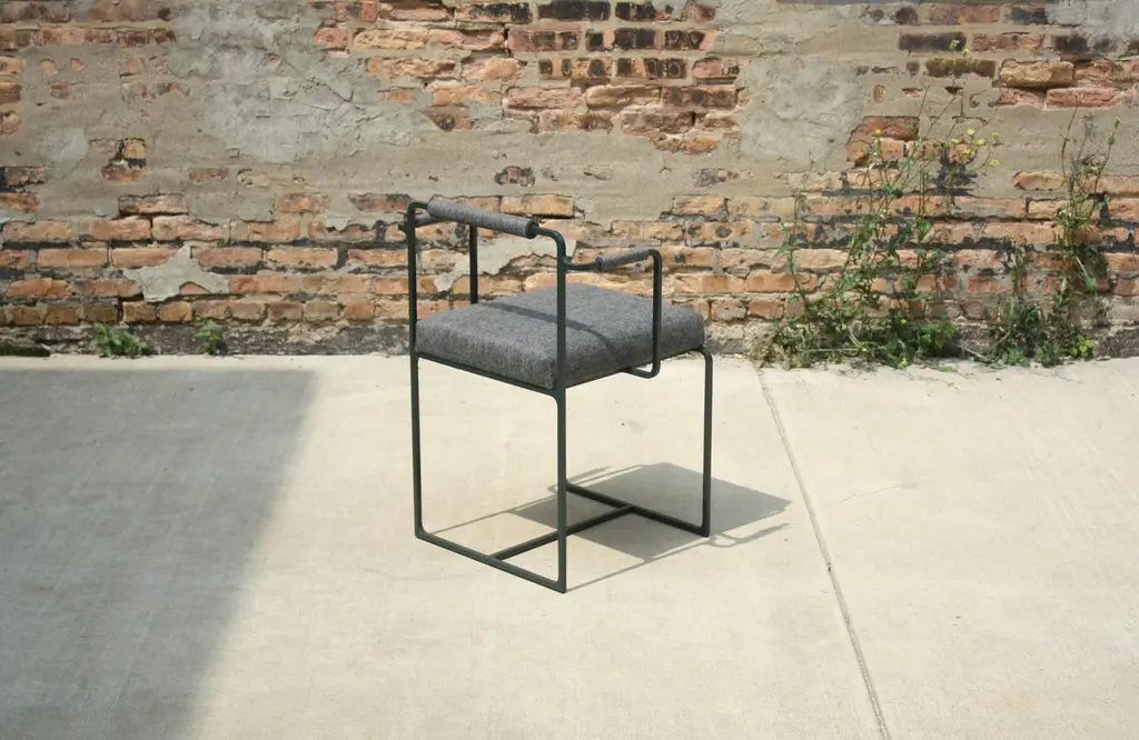Shown with a glossy essex green frame and merino wool felt upholstery (graphite)Also shown without arms with a blackened steel frame and merino wool felt upholstery (graphite/rost) and rendered with a hardwood seat and as a 48" bench with armsMeasures: 18” deep x 22" wide x 29.5” tall (with arms) 18” deep x 18” wide x 29.5” tall (without arms)The CODA dining chair features a solid steel frame with handstitched merino wool backrest, armrests, and an upholstered seat. Intentionally simple, the chair can be produced with or without arms in a variety of finishes to suit any homescape. Handmade to order in our Chicago studio. Pricing is for a single armchair. Inquire for pricing on sets of 4 or more and custom orders.