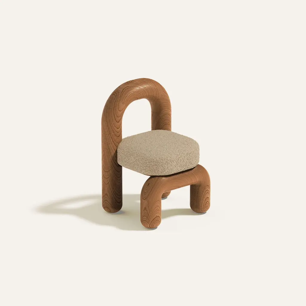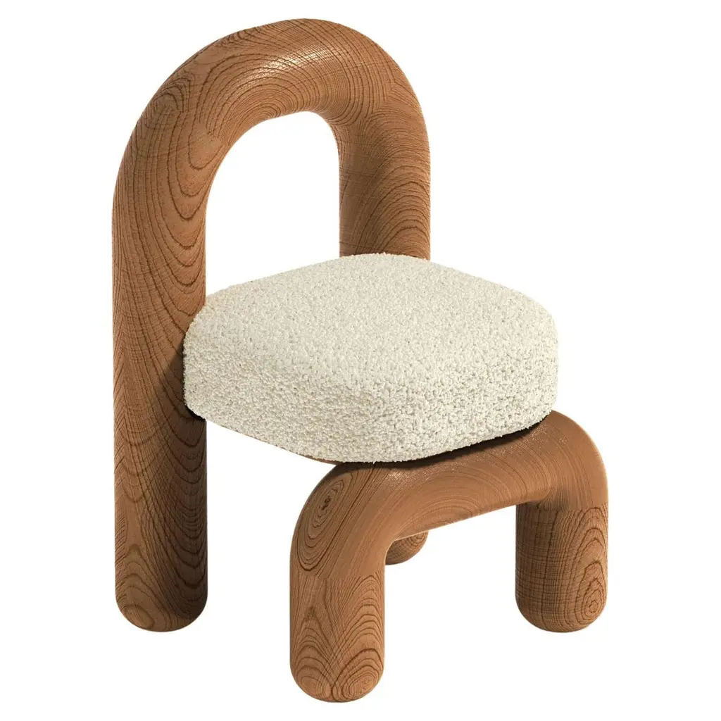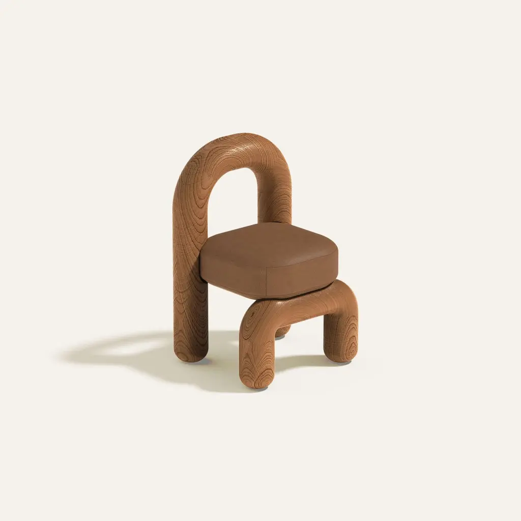 Cognac Leather Red Oak Lithic Dining Chair by Maha Alavi StudioDimensions: W 58 x D 54 x H 86 cmMaterials: Solid Oak.Maha Alavi is a Tokyo-based Canadian industrial designer. Her practice aims to explore context through connection and creation, informed by her prior training in philosophy and psychology. Alavi takes inspiration from travel — the way daily rhythms shift throughout different global geographies. She is fascinated by the influence of objects on people and spaces, and construction of cultural archetypes through design. Alavi cites places like Berlin, Kyoto, and Singapore as major sources of inspiration for her work. Time spent in cities so connected to both industry and nature have created a sensibility that focuses on detail and balance, and nurtured an understanding of light and seasons eventually inspiring her first hardware series, CERCLE. Through her unique lens Alavi transfigures both daily routines and unique experiences into exciting explorations of space and form. When designing, Alavi considers continuity in form and philosophy: the design must communicate its intent holistically and succinctly.