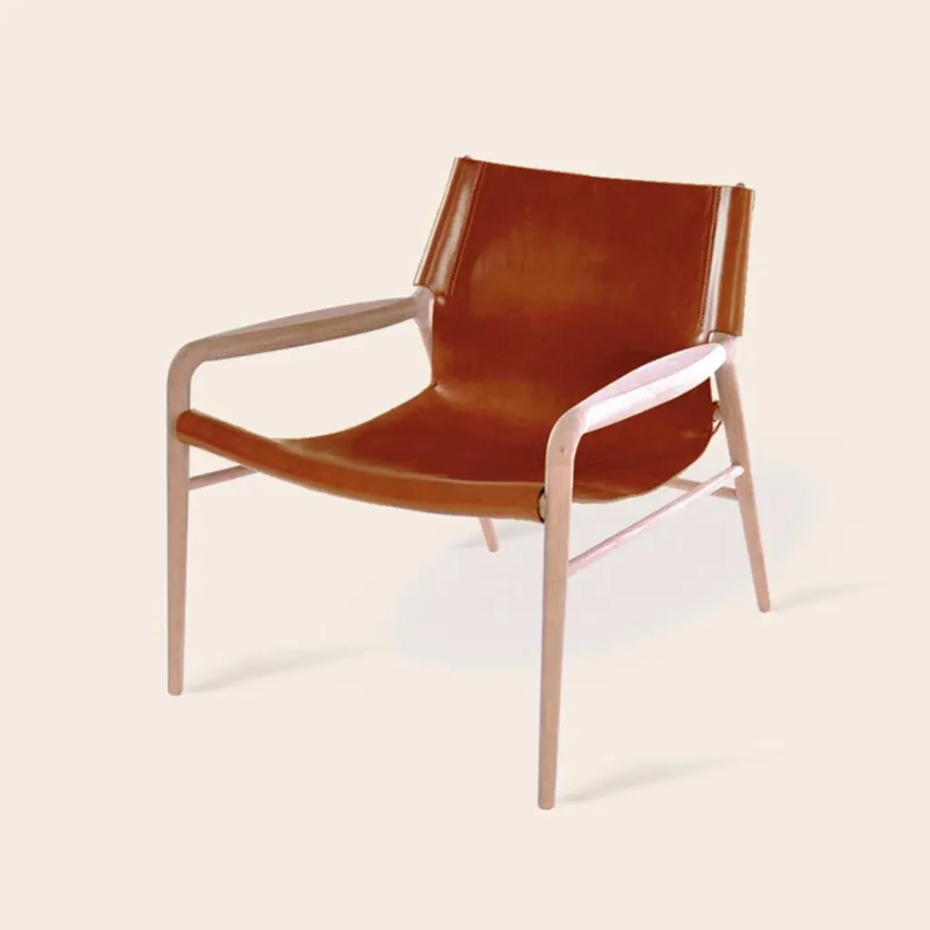 Cognac Rama oak chair by Ox Denmarq.Dimensions: D 72 x W 68 x H 70 cm.Materials: leather, woodAlso available: different colors available.Ox Denmarq is a Danish design brand aspiring to make beautiful handmade furniture, accessories and lighting in natural high-quality materials in fair prices. " When we set out back in 2003, we were primarily working with vegetable-tanned saddle leather thus the name OX was a tribute to our unique leather and the animal providing it.The other half of our name, Denmarq, is chosen to emphasize that we are a Danish design brand based on the Danish design tradition and that most of our furniture is produced in Denmark. However, Denmarq not only refers to our home country, but also to the co-founder and designer - DENnis MARQuart.Before finishing his design studies at the Copenhagen Design University, Dennis Marquart did a Blacksmith education. This background is extremely useful when developing and designing products."Ox Denmarq handmade products will only get more beautiful as time passes and natural patina sets in.Many OX products are shaped around marble or vegetable-tanned saddle leather. Stone and leather are materials that will, and should, get marks over time. But they will also age with a very special beauty. When you learn to appreciate the beauty of maturity and of time passing, you have learned to appreciate patina the way it should be appreciated.