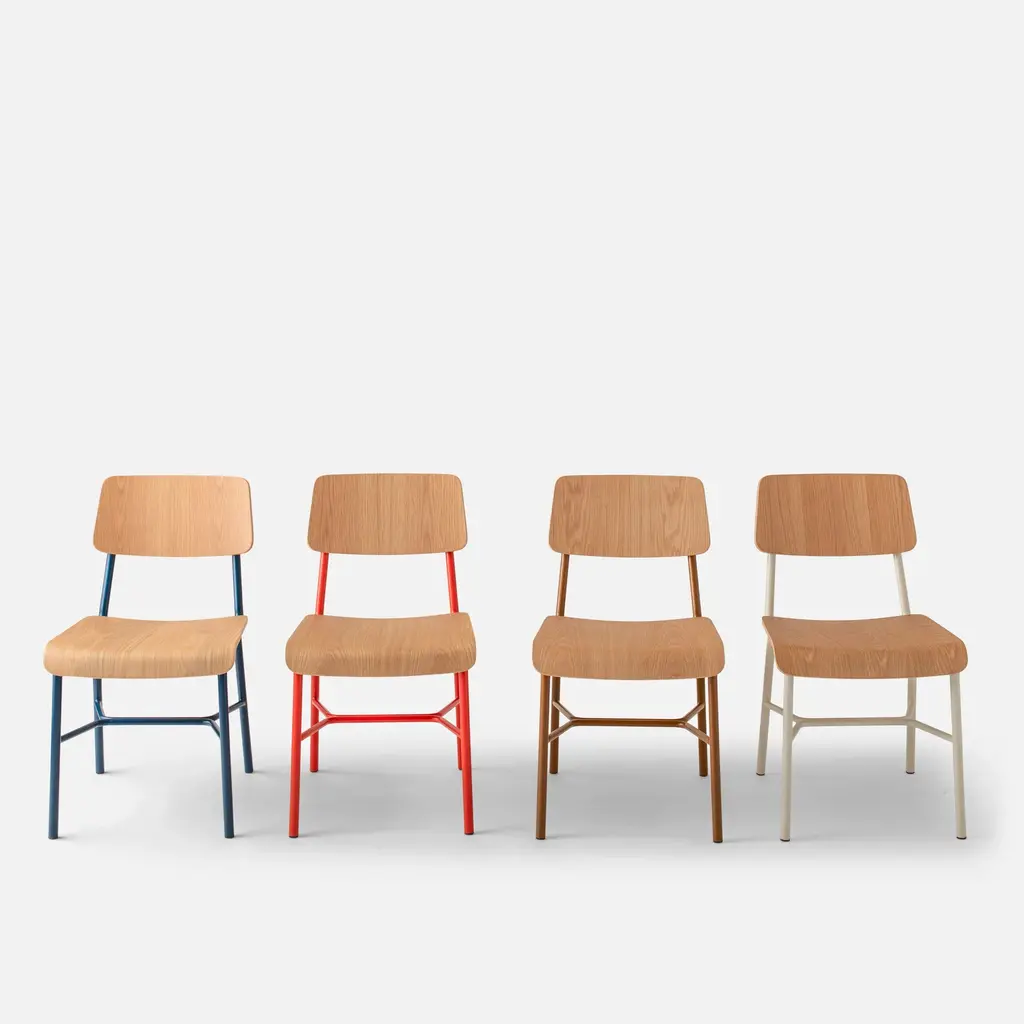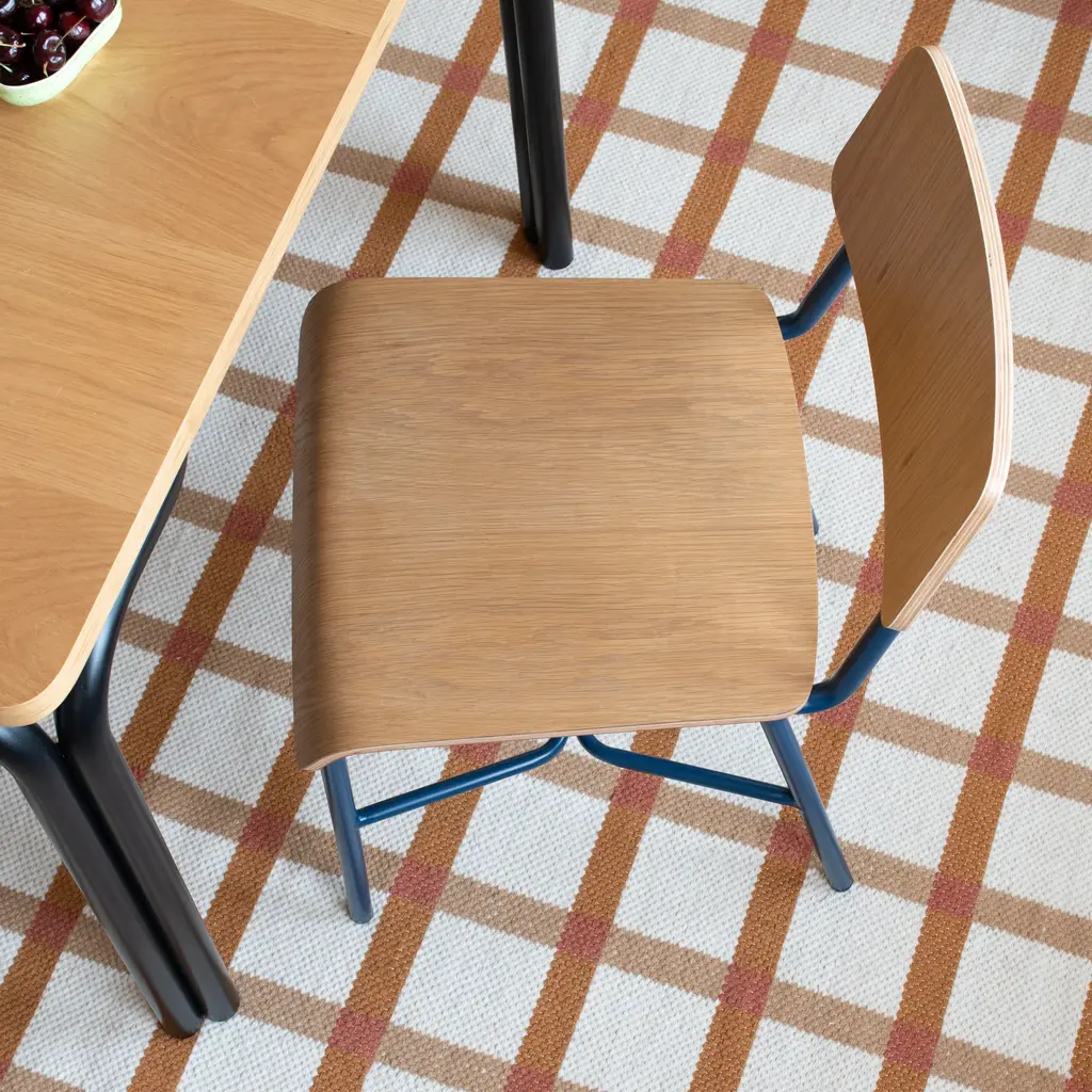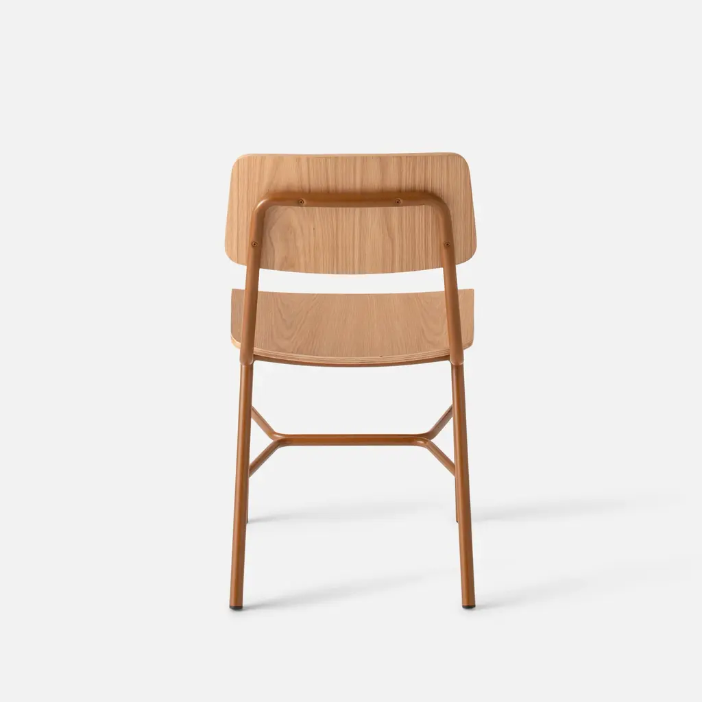Inspired by classic French classroom chairs (école = school), the Cole Dining Chair brings a smart mix of nostalgia and modern design. Featuring a contoured oak veneer over a bent plywood seat and backrest, with a sturdy powder-coated metal frame, this versatile chair is equal parts playful and practical. Available in four bold colors that are made to mix or match.