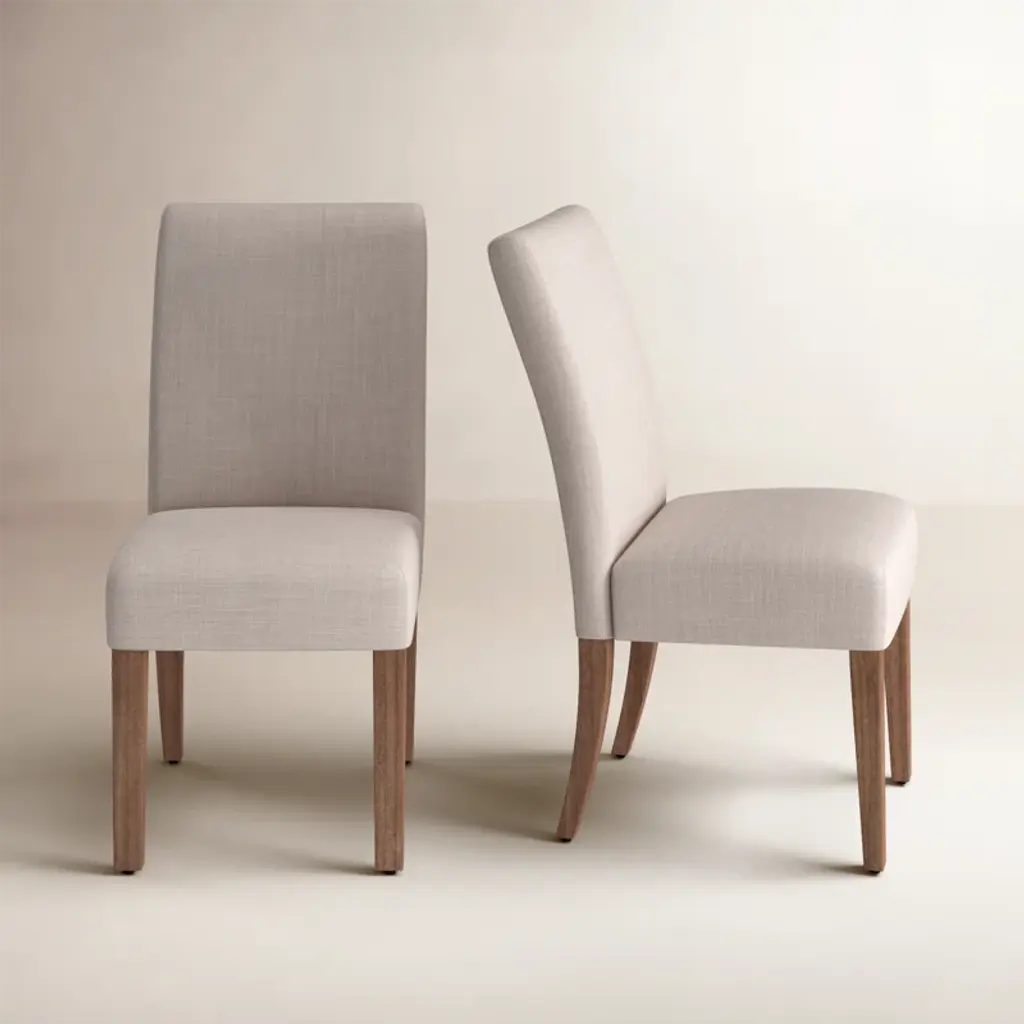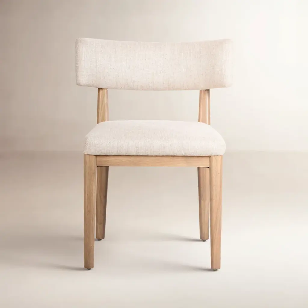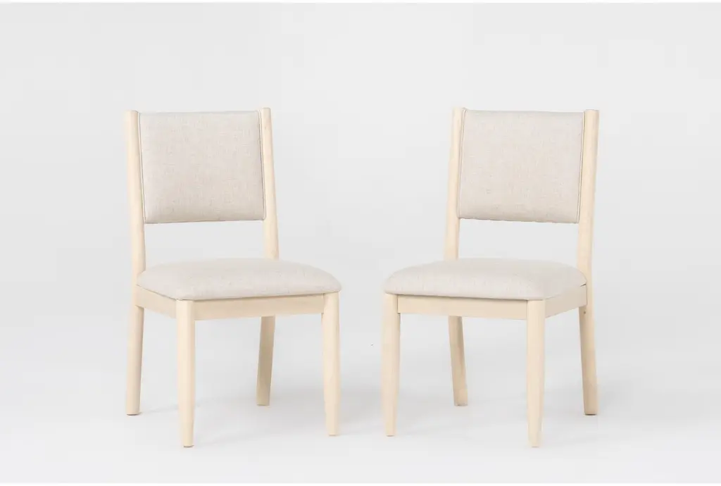 Arriving as a 2-piece set, this side chair combines comfort with sleek modern style. It's crafted from solid and engineered wood with a washed oak finish for a breezy coastal touch we love. An ergonomically shaped curved back and the square seat are both wrapped in beige-toned polyester fabric. With a generously padded interior, this chair gives you ample support as you sit for your morning cup of coffee or a nightcap before bed. Bonus: Each piece in this set accommodates 300 lbs.