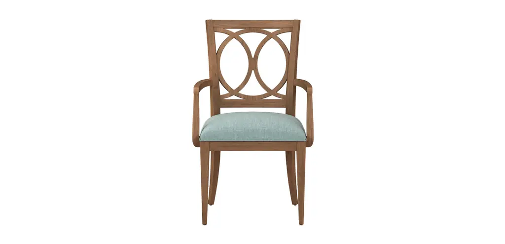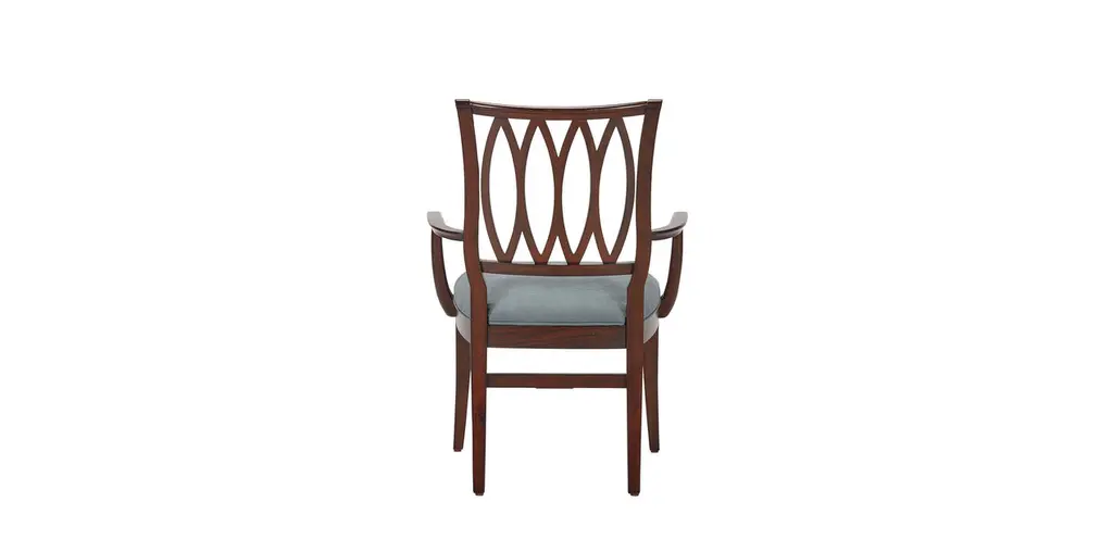 Elegant dining is Colette's spécialité—so much so that you'll want to stay en place for hours. From the front, you see a graceful tulip-leaf shape that connects each post. From the side, you see its gently arched back that says "get comfortable." Finish your chair with your choice of hundreds of fabric styles for a look that's exactly what you want.