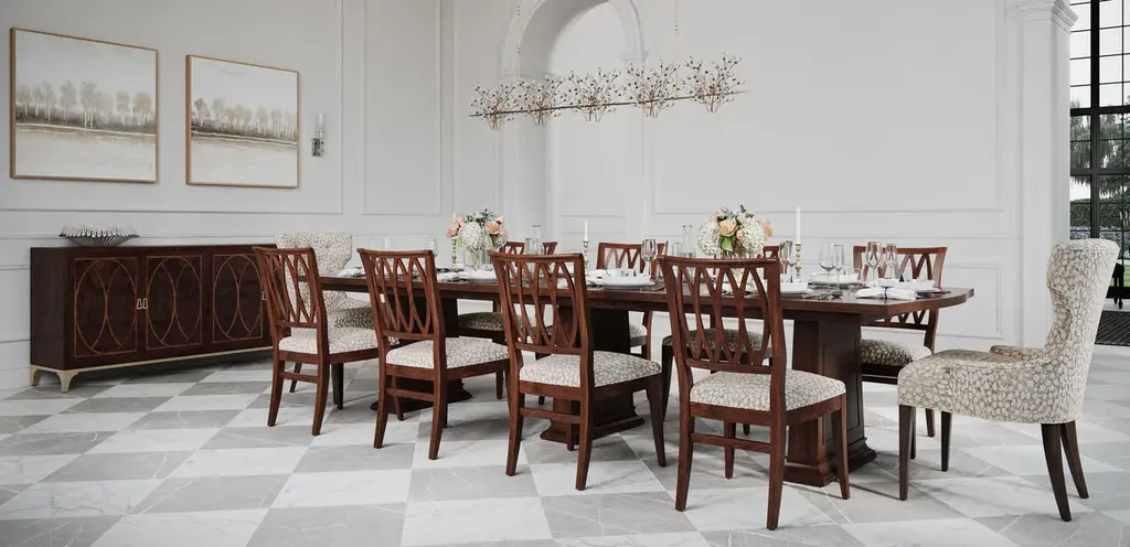 You'll want to enjoy sitting with Colette for hours! Its tulip-leaf motif brings in natural beauty, while the subtle arch of its backrest creates long-lasting comfort. Choose from hundreds of fabric styles—more in the Design Center—to make Colette your everyday dining date.