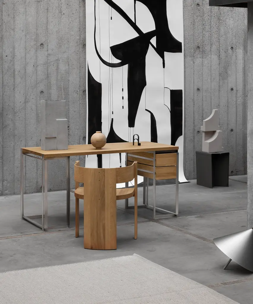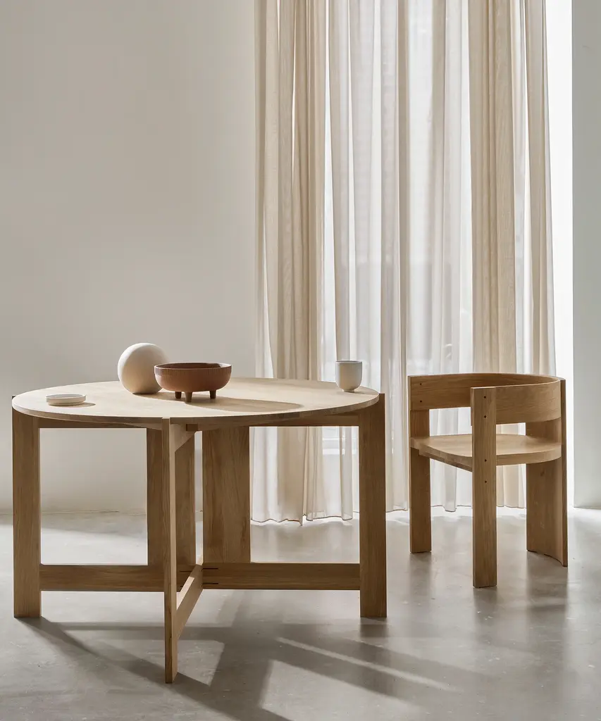 The Collector Dining Chair evokes a sense of honesty and simplicity with its selected silhouette. The unique curves of the Collector Dining Chair exemplify Kristina Dam’s pledge to minimalism and geometry. The arch of the dining chair embraces the three chair legs in a single movement. The Collector Dining Chair is created with an inherent minimalistic feel and a timeless aesthetic, the subtle design and comfortable dimensions make it suitable for both domestic and professional use, where uncompromising quality is imperative. Designed by Kristina Dam Studio in Copenhagen, Denmark.