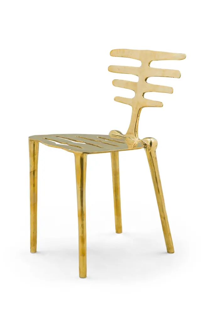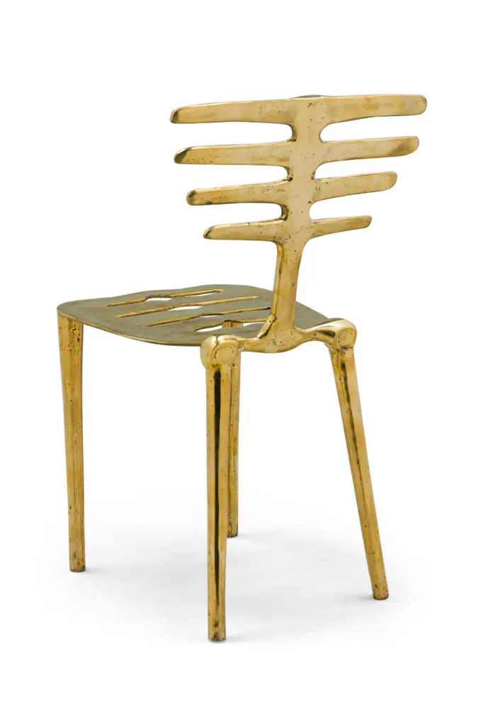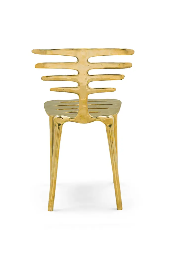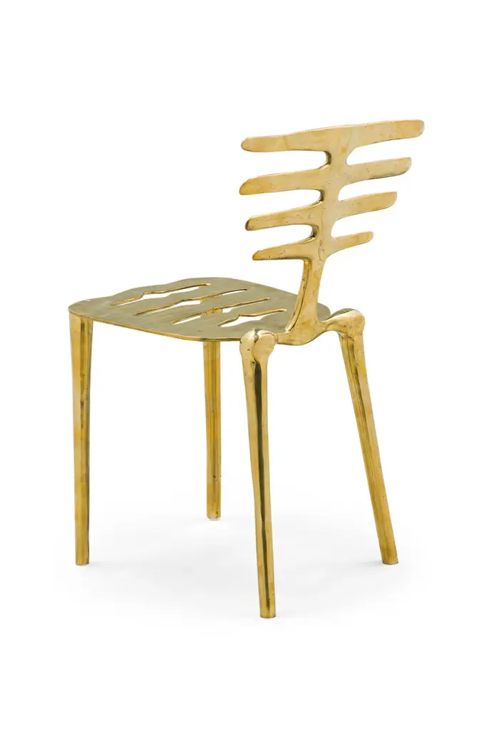 "Coluna" Organic Form Horizontal Slat Polished Bronze Dining / Side Chairs