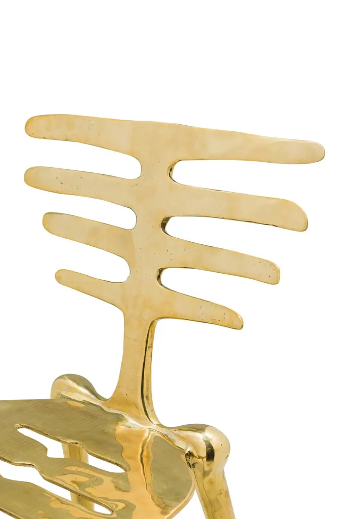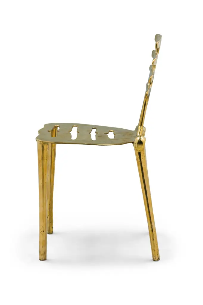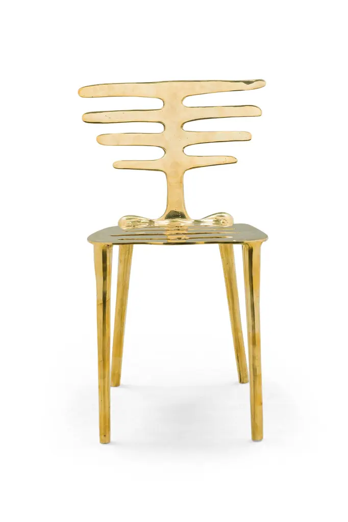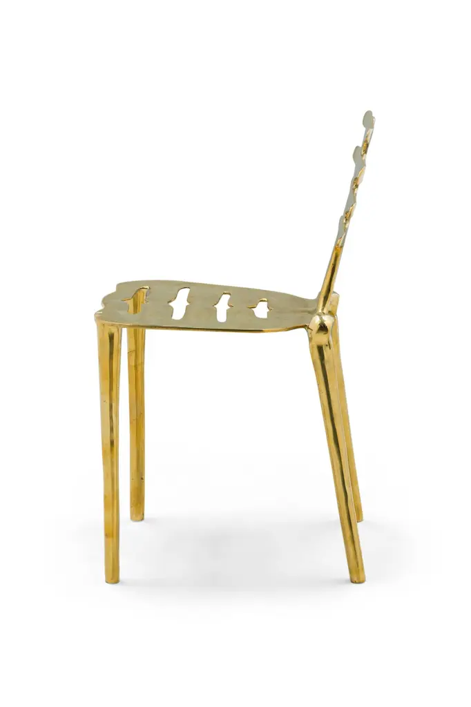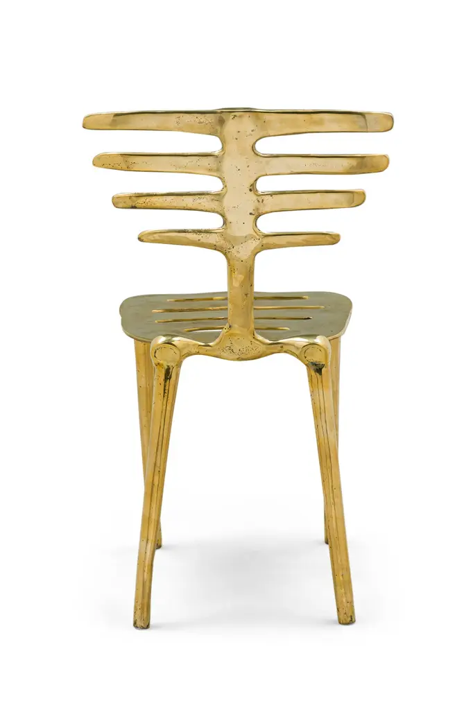 "Coluna" Organic Form Horizontal Slat Polished Bronze Dining / Side Chairs
