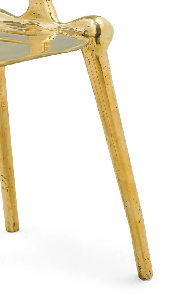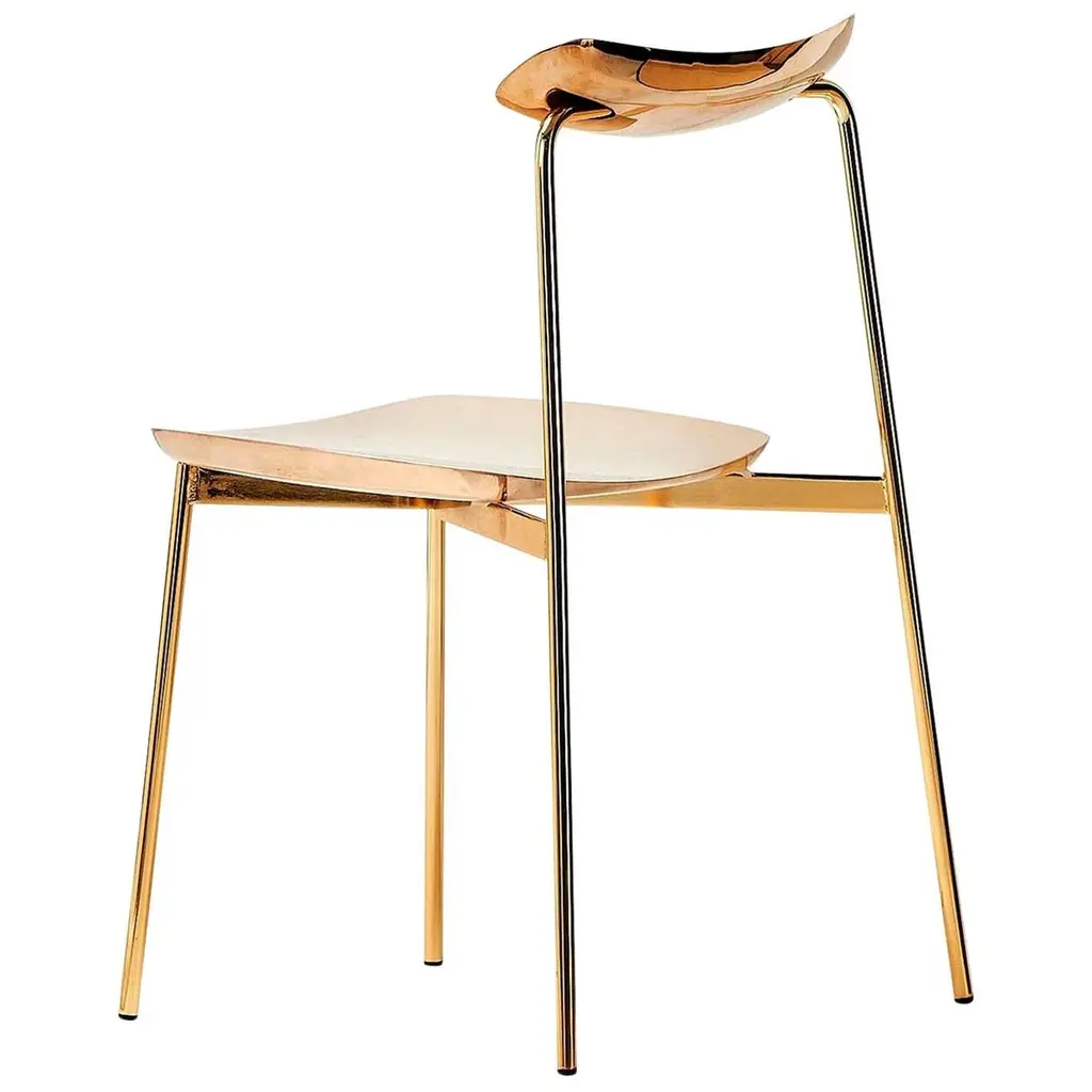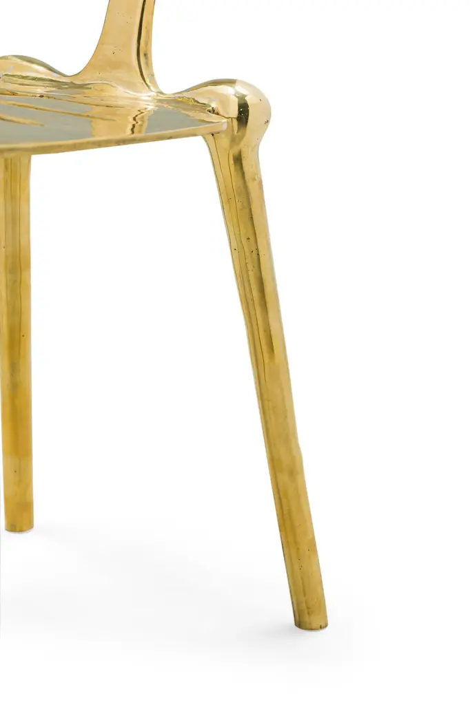 7 Contemporary / Modern "Coluna" dining side chairs in a biomorphic form constructed from polished bronze, featuring organically shaped horizontal slat backs. (PRICED EACH) (1 matching chair 30" high-MOD2067)