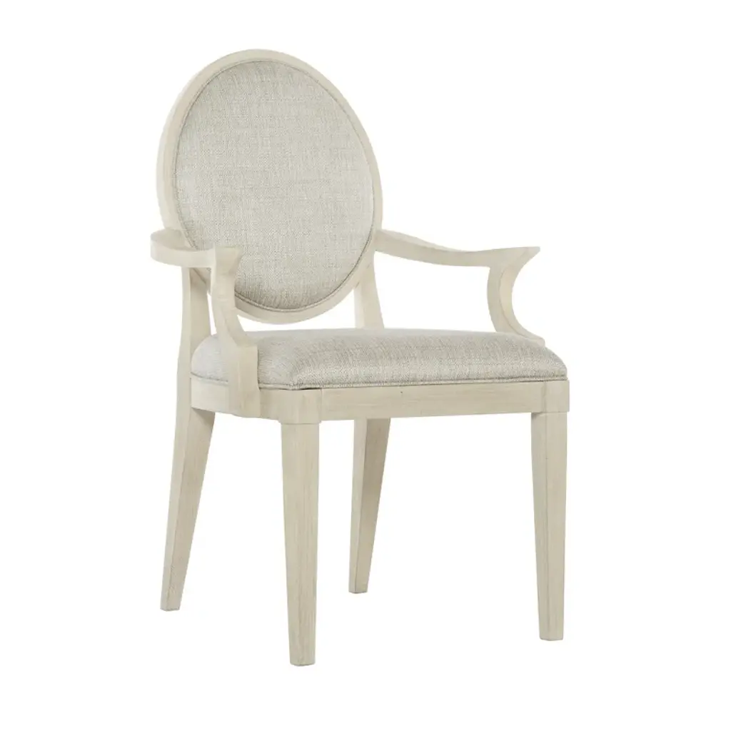 Bring the relaxation of the shore into your interiors with the Commerce and Market chair, versatile as a dining or accent chair. Featuring sloped arms, a 3-slat back, and rope accents on the joints, the chair has a fabric seat and a natural light wood finish with transparency to reveal the color and grain variance in the wood. The fabric seat is covered in oyster performance fabric.
