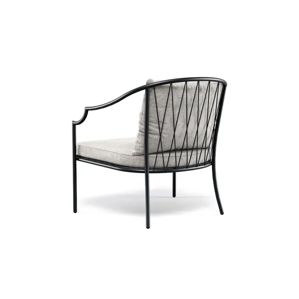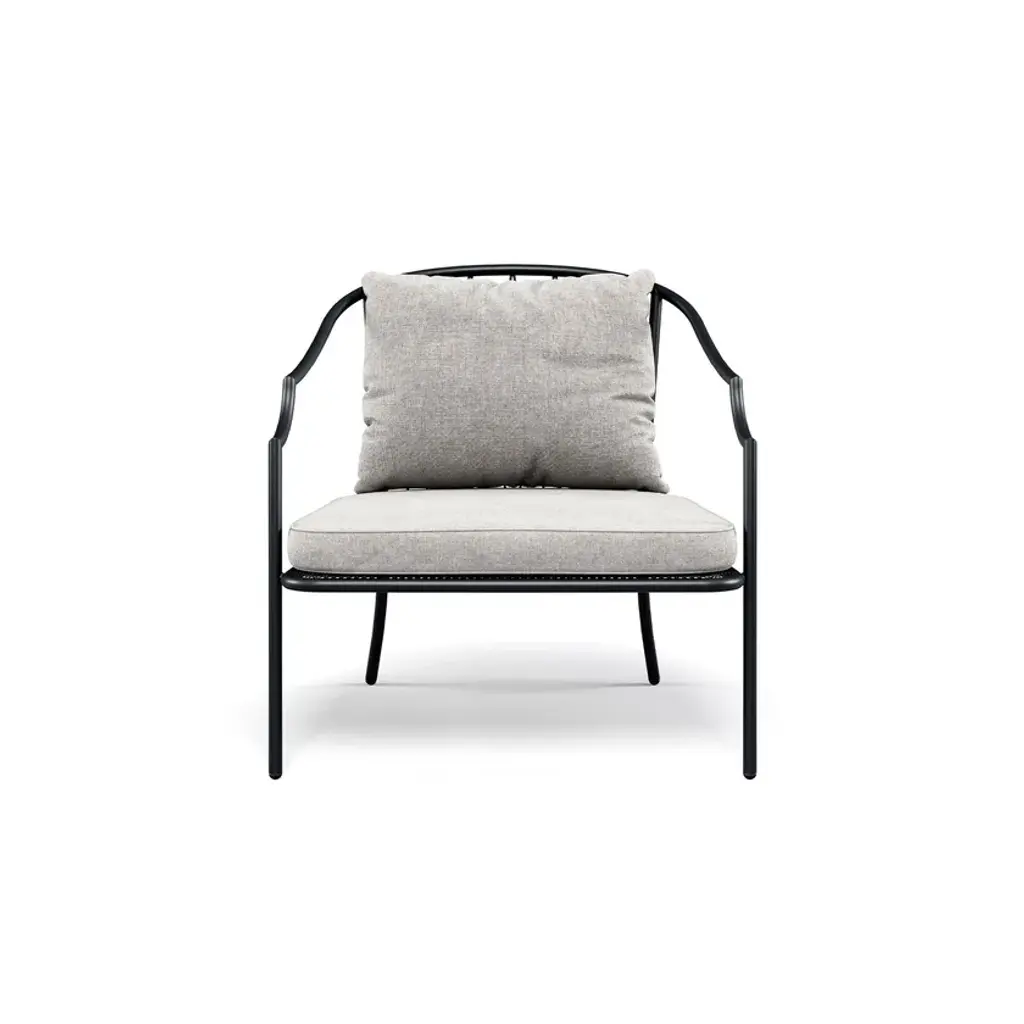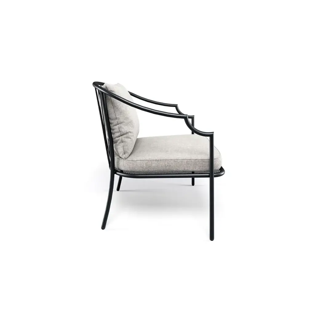 Como is a garden armchair with steel frame.Como is a full collection of seats including a chair and an armchair for the dining area, another armchair with a higher backseat for dining, a lounge armchair and a sofa. The frame of dining seats is made by steel tube with diameter 22 and a thickness of 2mm for a high level of outdoor performance. Some steel wires are fixed to the backrest frame as its decorative pattern: these wires are spot-welded by a special projection welding technology, which allows a cleaner wire fusion for a more refined aesthetic effect and a lesser risk of rust. The steel mesh sheet seat plate is hot-zincked and welded to the frame using the before mentioned projection welding technology for high resistance performance in outdoors. Like all EMU products, a cataphoresis pretreatment is provided and then a thermosetting powder coating treatment, which finally produces a layer of homogeneous paint in terms of thickness with an high level of adherence and resistance. Nylon feets supports make it easy to move and protect the product.Available colours: antique iron, black, ice white, indian brownCushions:Basic fabrics (all)Standard Fabrics (all)Premium fabrics (all except corsica, greyscale, harlequin, striped polo and lavender stripes)