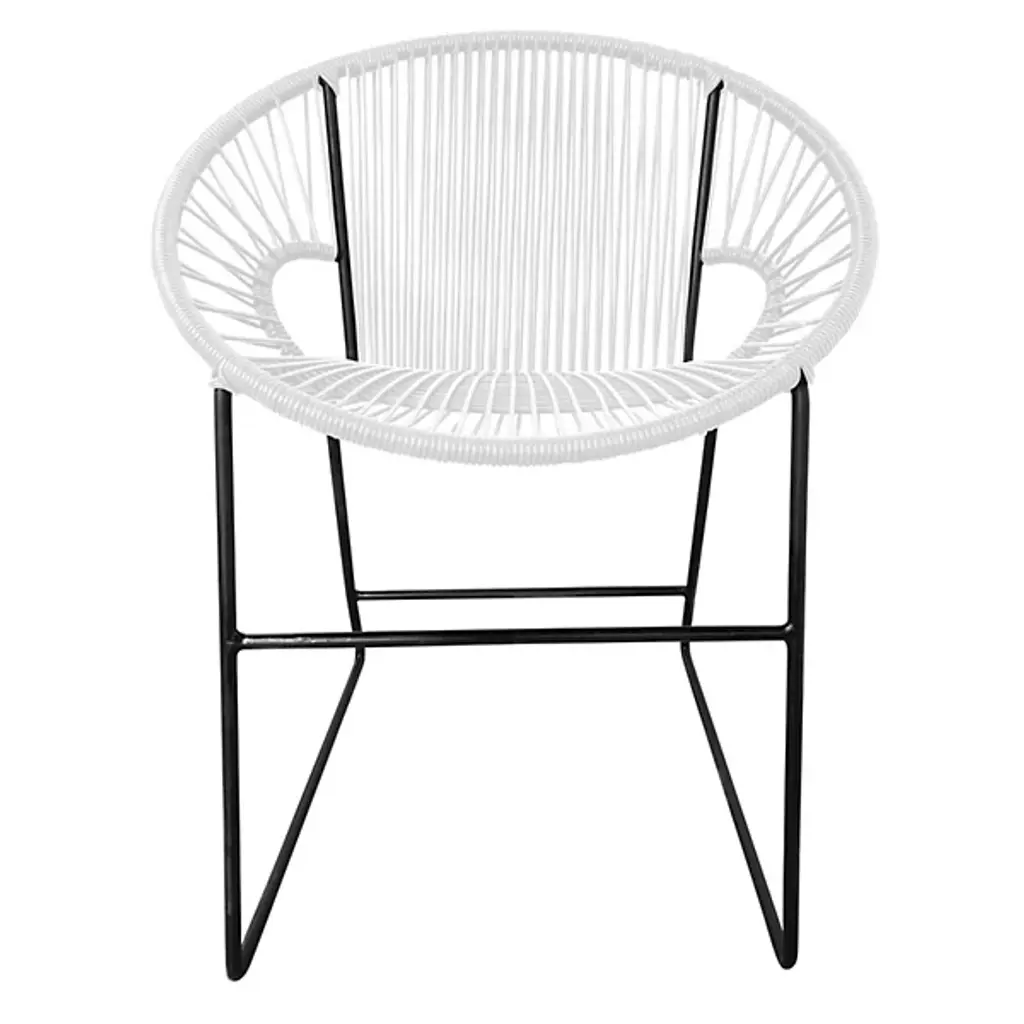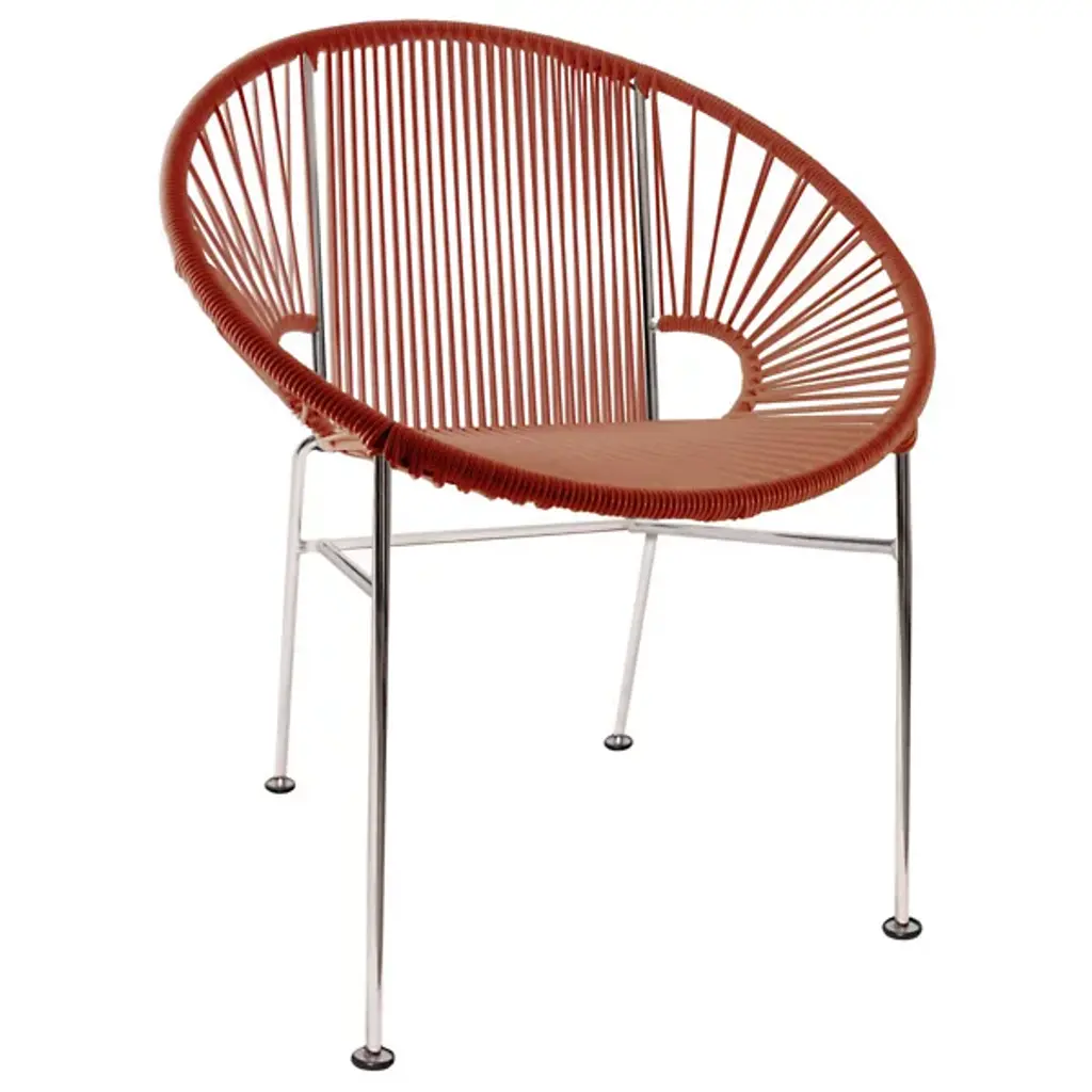 Bring the airy comfort of Innit Designs lounge chairs to outdoor dining with the Innit Designs Concha Outdoor Chair. The unique pattern and rounded shape of the hand-woven vinyl seat is inspired by the symmetrical markings and shape of seashells. This durable, colorful seat sits atop a simple yet strong galvanized steel base.
