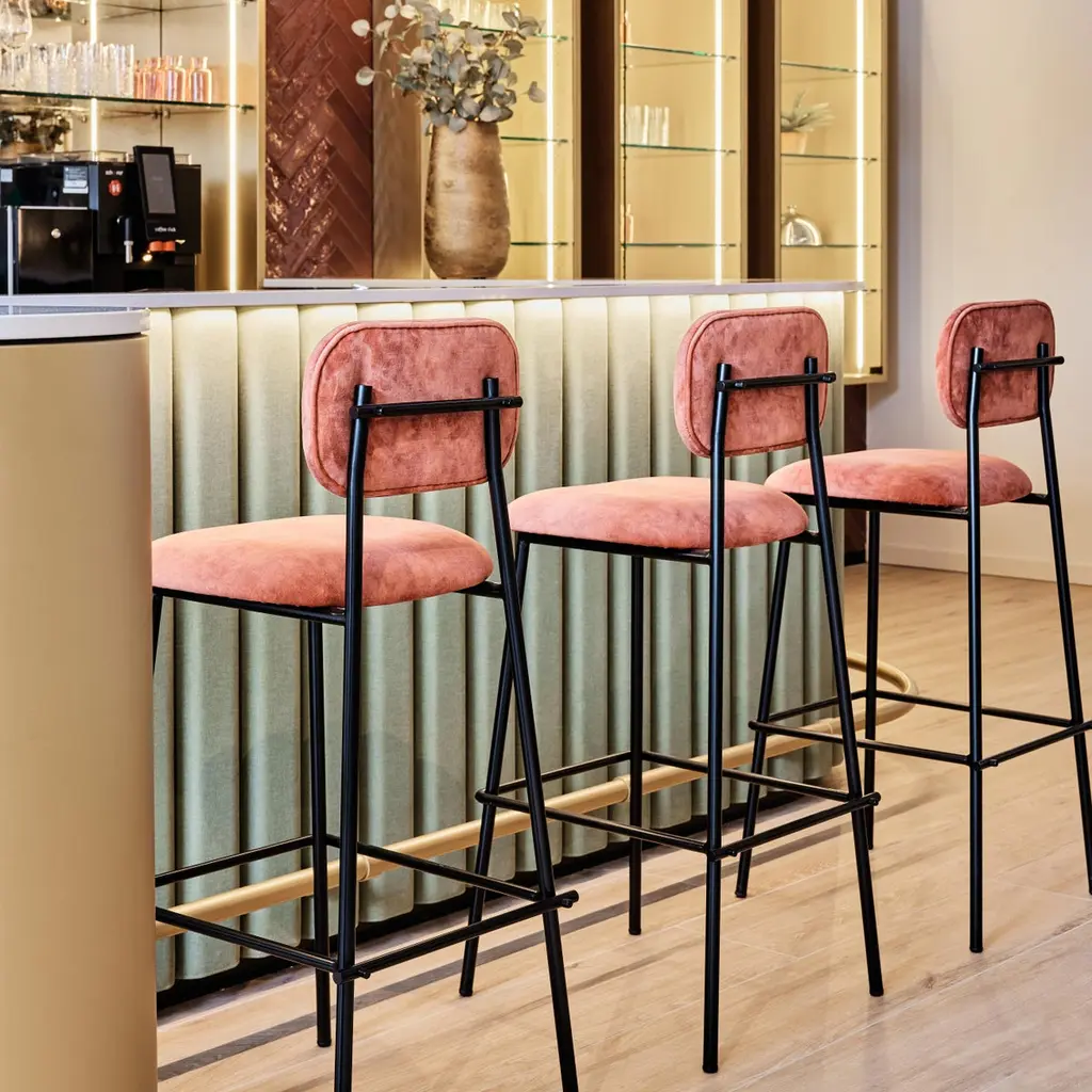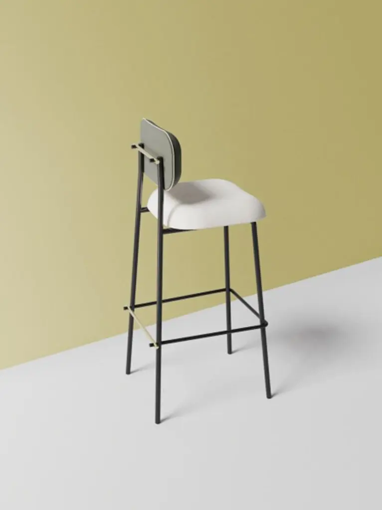 The iconic Miami counter chair combines clean lines with soft upholstery resulting in an effortless modern Classic that is perfectly proportioned.This versatile chair features enriching brass or copper details on the back which combined with the light lacquered metal frame allow a mix and match resulting in the perfect combination for any space and concept. A chair that will casually exist in any space due to its weightless and refined shape.The seat and back is available in a selection of curated fabrics or leathers from our collection. Made to order.If you are planning on ordering an upholstery item with COM upholstery, please follow these instructions: - Let us know that you are shipping fabric to us prior to shipping, as we will need you to fill a form;- All fabrics must be shipped to the company DOOQ, LDA, and no other name;- Send us the fabric invoice so we can present it to portuguese customs so the fabric can be released;- Our company must appear on the fabric invoice as "SHIP TO" only, not as "BILL TO" or "SOLD TO"- Our company has the right to refuse acceptance of fabric/leather if the shipment of such material ignores the requirements written above.
