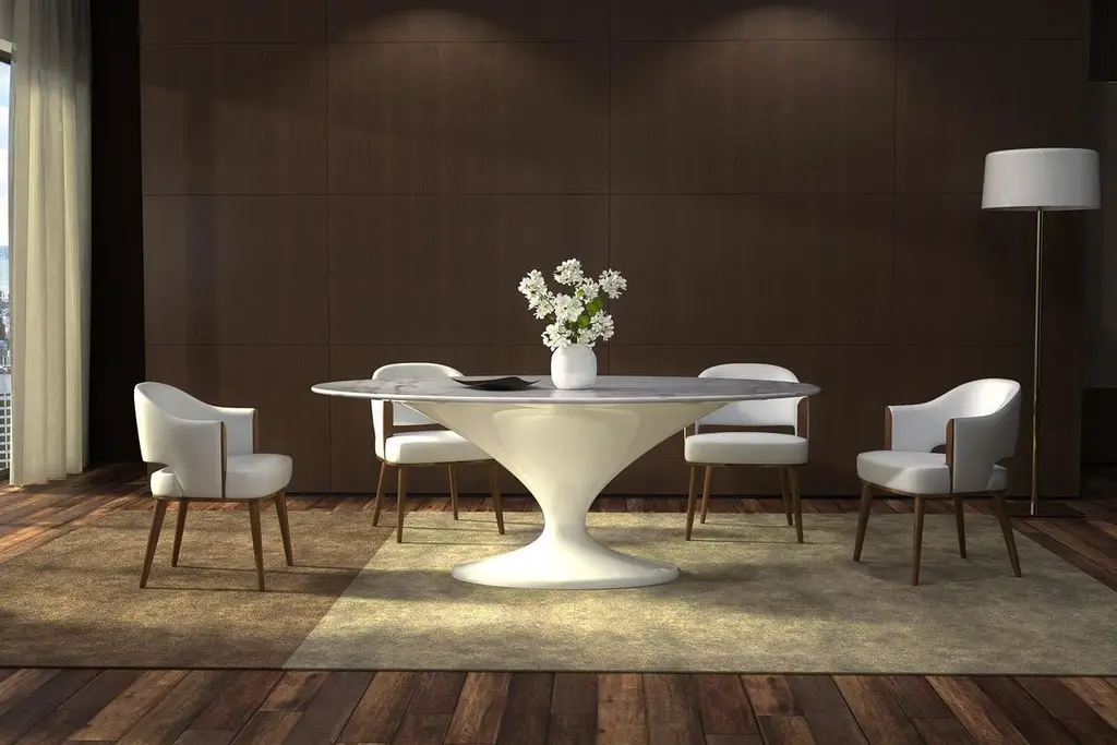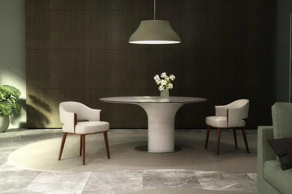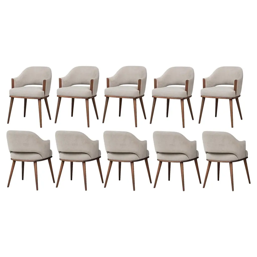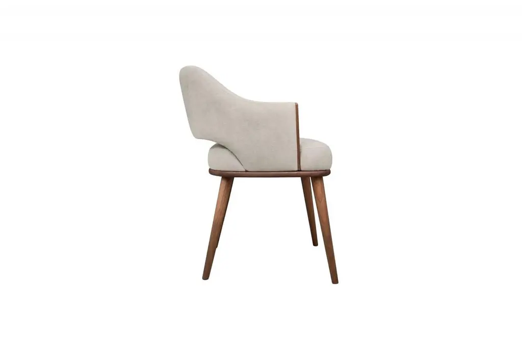 A refined balance of elegance and simplicity, this dining armchair features a softly curved backrest and plush velvet upholstery, offering exceptional comfort with a tailored silhouette. Subtle wood detailing along the arms adds a crafted architectural touch, echoing the solid wood base finished in a rich wood finishes. Minimal yet warm, this piece is ideal for contemporary dining rooms or elevated hospitality settings.Materials: upholstery over high-resilience foam wrapped with memory foam for lasting comfort and gentle support.Available in other wood finishes and in any RAL color upon request.This product is fully made in the European Union (EU) in compliance with European Union manufacturing and safety standards.“Minimum order of 4 chairs.”We do our best to expedite production and to ship and deliver product within the listed lead time, however current lead times might be longer due to global shipping backlog and delays. These delays are out of our control and cannot be a reason to cancel an order.