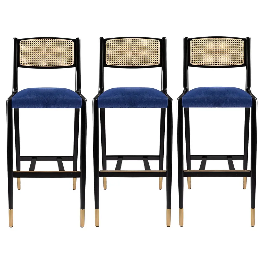 A Mid-Century Modern style dining chairs in ebony finished frame.Ebony finished wood frame.Backrest in natural woven cane.Seat in cognac tan faux leather. Polished brass caps.Dimensions: W 47 cm x D 61 cm x H 77 cmMaterials: Wood, faux leather, rattan, brassSeat H 46 cmAvailable in COM.Contact us to enquire about COM/COL production, requirements and material shipping instructions.Please contact us if you have any questions about customization and pricing. We will be glad to check with the factory’s technical team if sizes, finishes, and colors can be customized. We do our best to expedite production and to ship and deliver product within the listed lead time, however current lead times might be longer due to global shipping backlog and delays. These delays are out of our control and cannot be a reason to cancel an order.