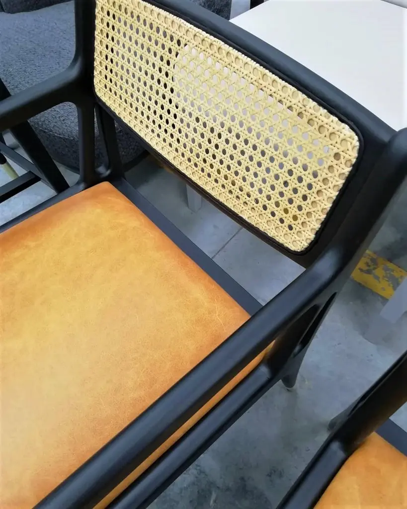 Contemporary Dining Chair Featuring Natural Rattan Backrest