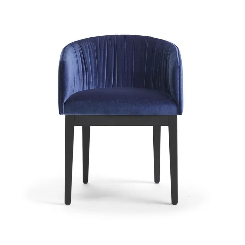 Featuring navy blue velvet upholstery, wooden legs lacquered in black and a curved silhouette worth sinking into, a timeless elegant design crafted to blend easily with any décor style. This chair is heavily constructed and suitable for contract use.100% Made in Italy.Contact us to enquire about COM/COL production, requirements and material shipping instructions.Please contact us if you have any questions about customization and pricing. We will be glad to check with the factory’s technical team if sizes, finishes, and colors can be customized. We do our best to expedite production and to ship and deliver product within the listed lead time, however current lead times might be longer due to global shipping backlog and delays. These delays are out of our control and cannot be a reason to cancel an order.