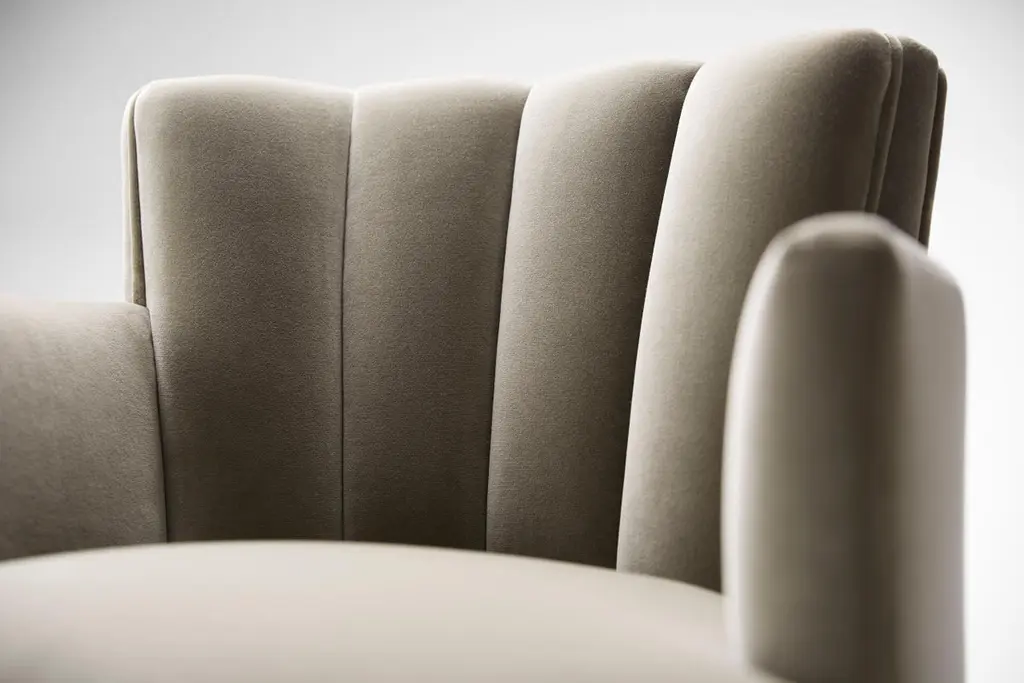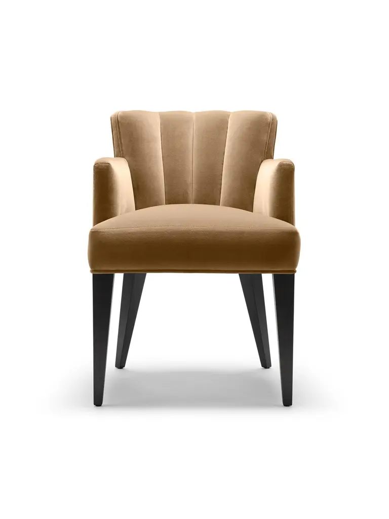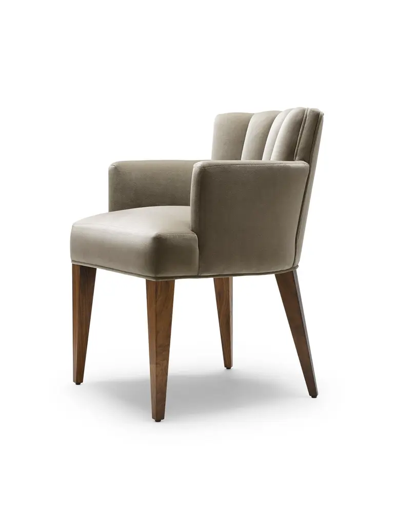 The Isabella Carver Chair is the latest edition to our signature collection – 12 years in the making. Sister of the original Stuart Scott piece, the Isabella Dining Chair, the Carver has been one of our most highly requested over the years.The exquisite tailored fluting and distinctive lines give a shapely feminine edge. This design is superb upholstered in luxurious cotton velvet.Shown here upholstered in a cotton velvet in Pigeon with legs in natural oiled walnut.Constructed with solid walnut legs and a hardwood and birch plywood frame, featuring a pocket sprung seat and an individually fluted back.Construction: solid walnut legs, with a hardwood and birch plywood frame, featuring a pocket sprung seat and an individually fluted back.The Isabella dining chair has also achieved British Standard EN 16139: 2013 Test Level 2. Each Stuart Scott piece is built by hand in our workshop in Wiltshire, England. Nothing is mass-produced. This ensures complete attention to detail, structural integrity and sheer build quality. We never compromise. When we finish each piece, it is signed and numbered: a unique handmade masterpiece.