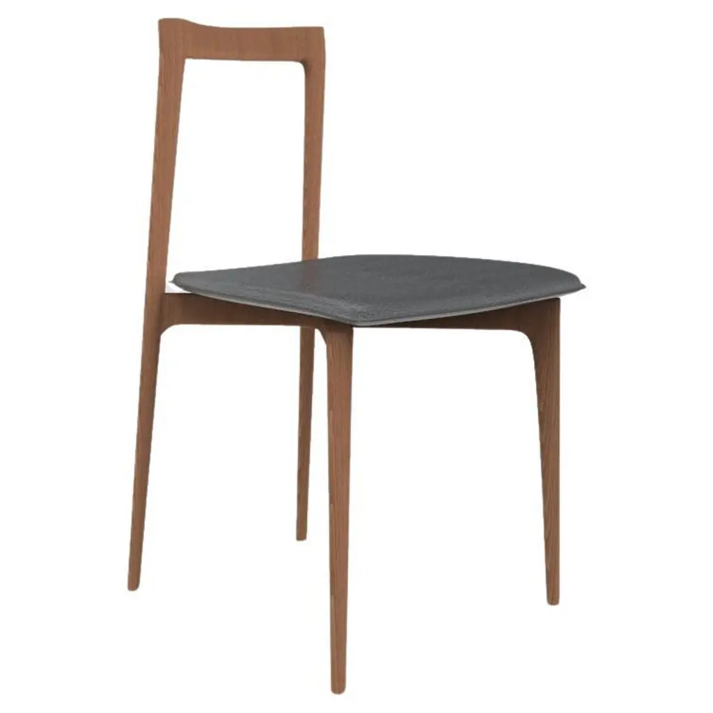 Contemporary Modern Grey Chair In Linea 625 Leather & Wood By Collector Studio