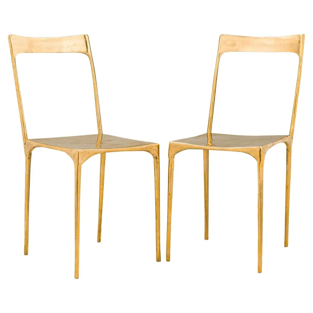 Contemporary Polished Bronze "Almeida" Dining Armchairs
