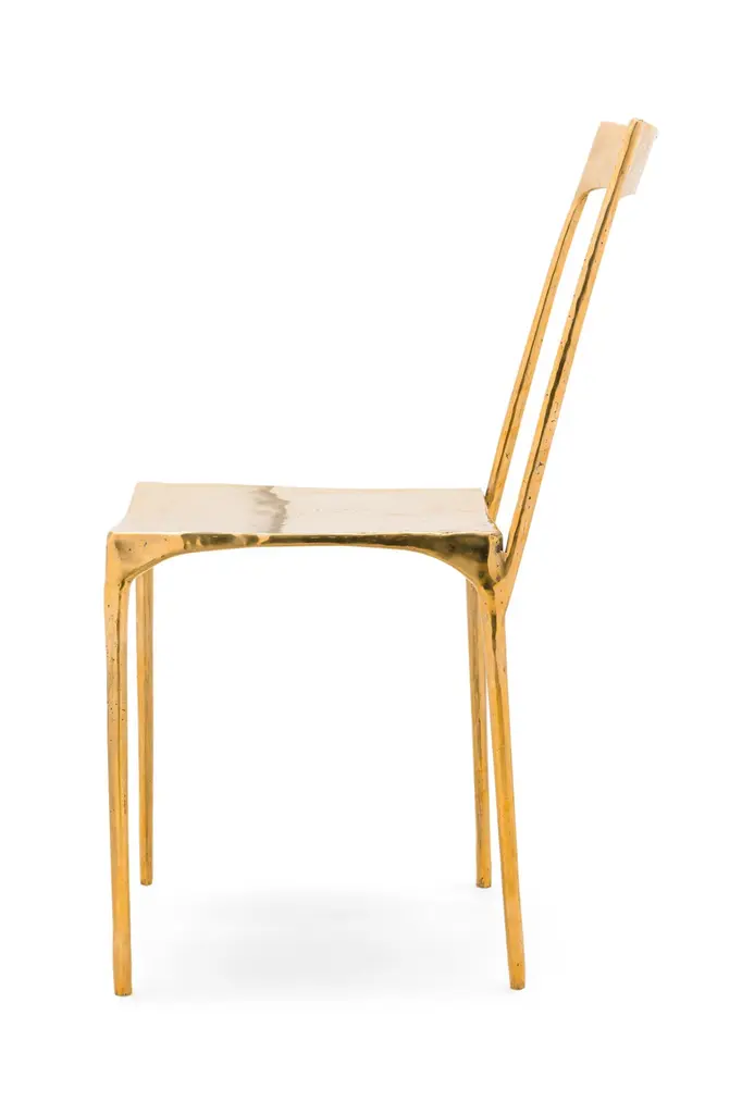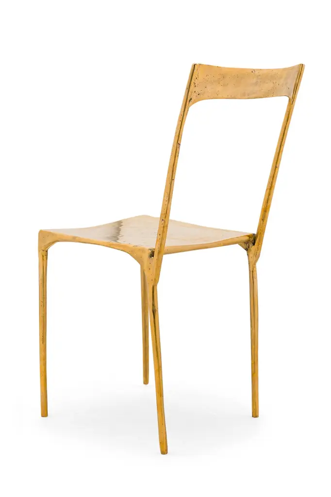 10 "Banquete" Contemporary dining / side chairs constructed in an organic form from polished brass (PRICED EACH)