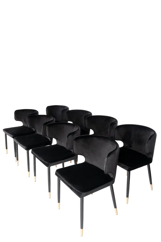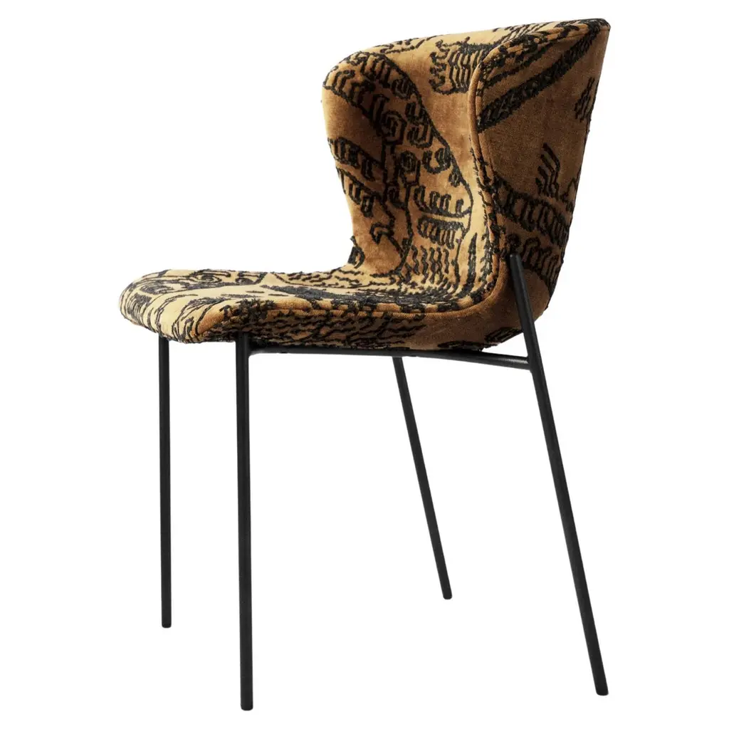 Pipe Set Tiger Mountain - 3 chairs Design: Friends & FoundersUpholstery available in a wide range of fabrics and leathersLegs available in: black steel, brass or chromeModel shown (fabric): Dedar, Tiger Mountain Fauve 002, Black frame Price may vary depending on the fabric and type of metal for the legs.Contemporary design studio Friends & Founders was founded in 2003 by Ida Linea and Rasmus Hilderbrand in Copenhagen, Denmark.For this couple, designing and creating is a ”geometrical performance act”. The lines and shapes are sleek and pure; often organic. And sometimes, it contrasts with the masculinity of the materials used, as marble or metal. The creations signed by Friends & Founders may look simple. In reality, the pieces are a perfect balance between functional comfort and elegance of lines and design.TIGER MOUNTAIN is high-end. Inspiration drawn from Tibetan carpets which were discovered in the West during the seventies, was used to complete important artistic and design research. A fascinating design as it is open to subjective “imaginative” interpretation, with magical tigers, curious guardians of many mysteries and a map featuring unknown places. A jacquard velvet boasting strong personality, expressive and highly regarded.
