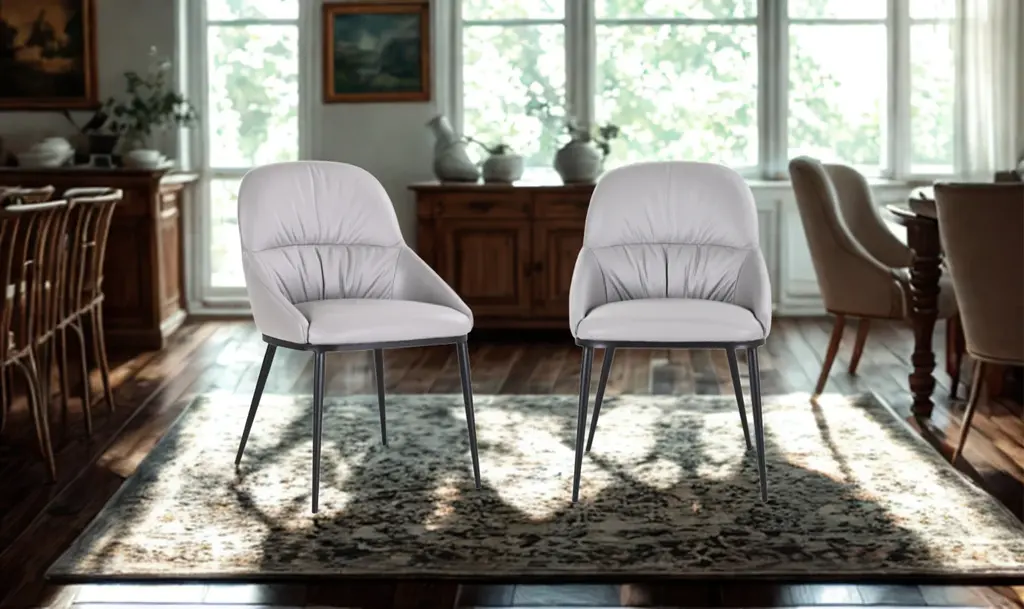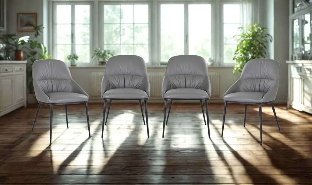Contemporary Set Of 3 Chairs 'Pipe', Tiger Mountain Fauve 02, Black Frame