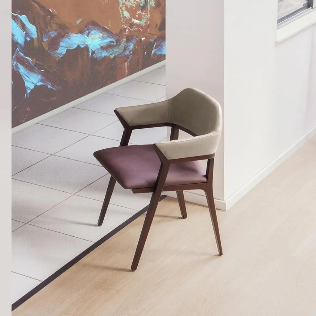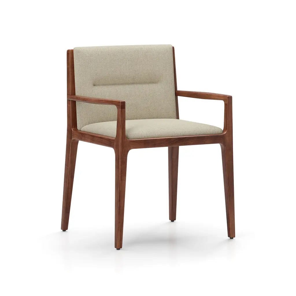 The armchair is a contemporary seating option that combines modern aesthetics with functional design. This chair features a solid wood base and is upholstered in high performance luxury fabric, providing both comfort and style. Designed with armrests, it is perfect for various settings, including public buildings, restaurants, hotels, bars, and homes. The armchair is part of an extensive collection known for its dedication to craftsmanship and the use of premium materials.For more detailed information, you can visit the product page here.Available upholstered in various fabrics, leather or C.O.M.We will be glad to check with the factory’s technical team if sizes, finishes, and colors can be customized. We do our best to expedite production and to ship and deliver product within the listed lead time, however current lead times might be longer due to global shipping backlog and delays. These delays are out of our control and cannot be a reason to cancel an order.