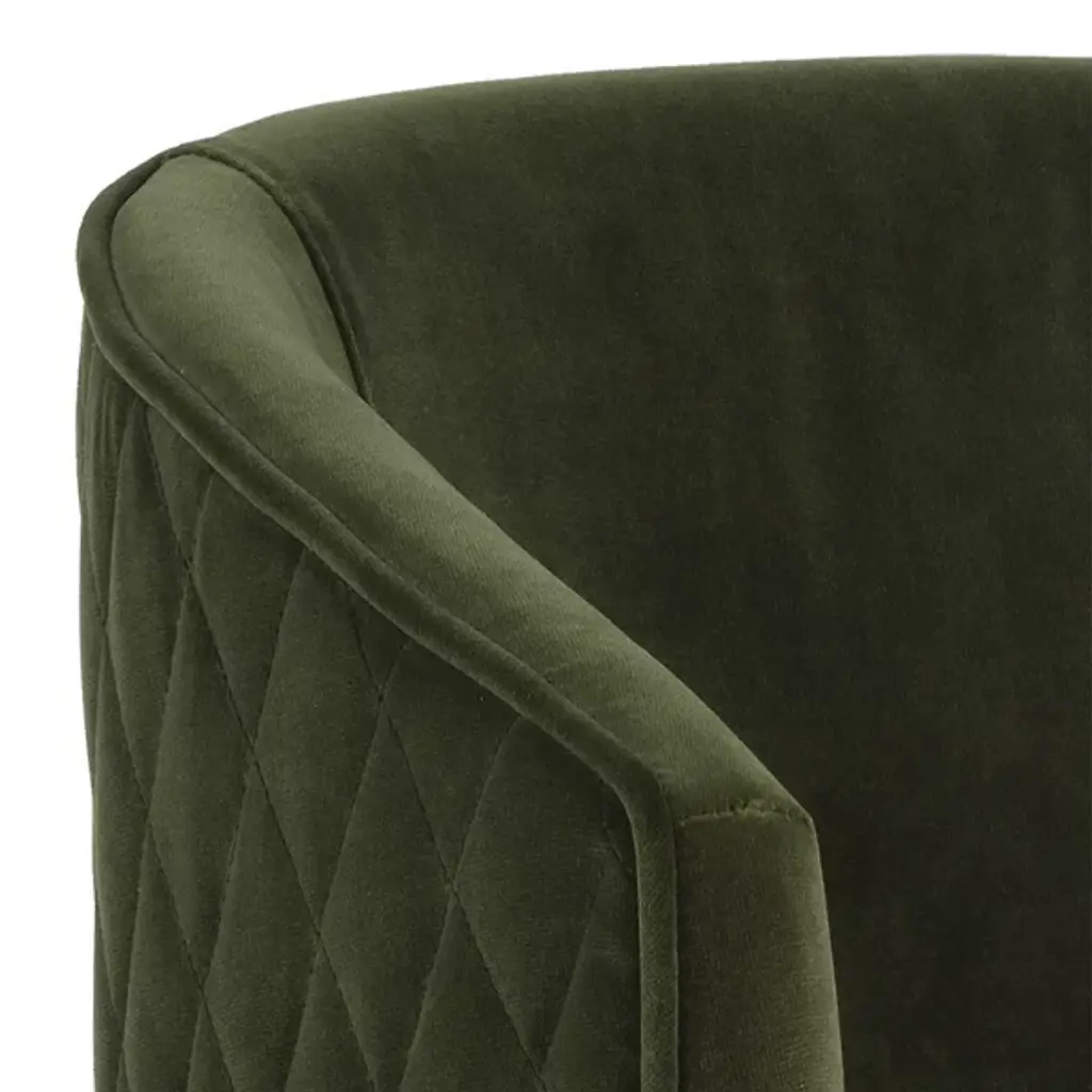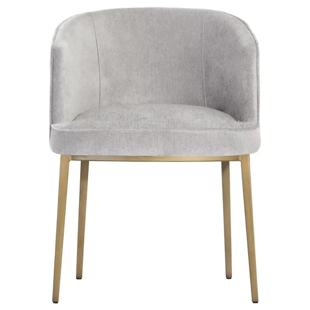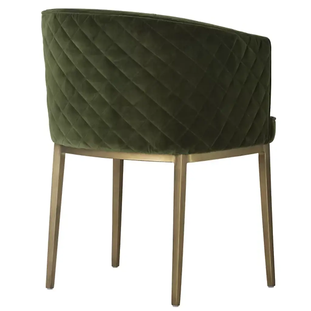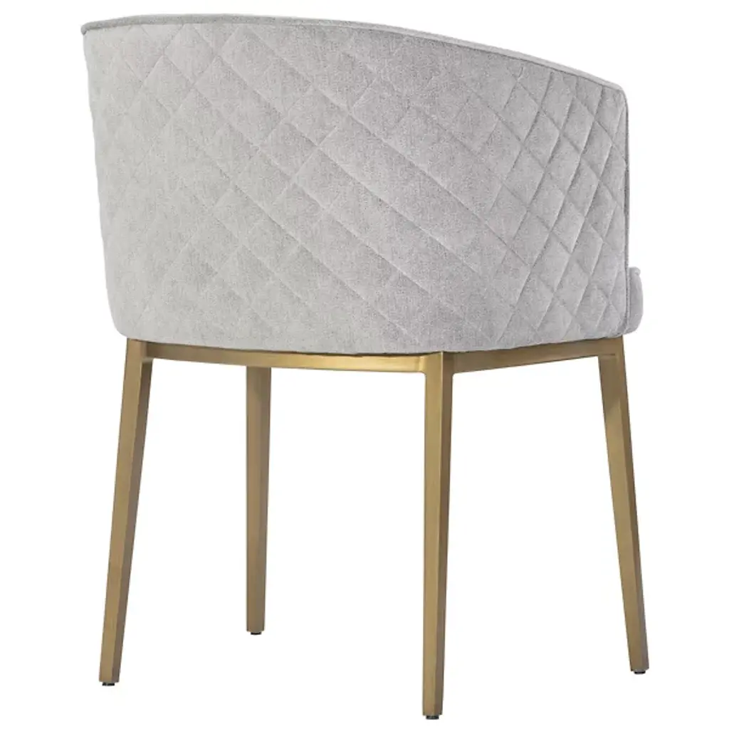 Bring an encompassing modern appeal to interior gathering spaces with the wraparound welcoming warmth of the Cornella Dining Armchair from Sunpan. Starting with a subtle iron base and slender legs, it encloses a wood-framed seat and back inside soft textile fabric. A diamond-patterned exterior enriched with subtle stitching contrasts well with the non-textured seat and back of the chair, creating a cohesive character with just a hint of intricate elegance.