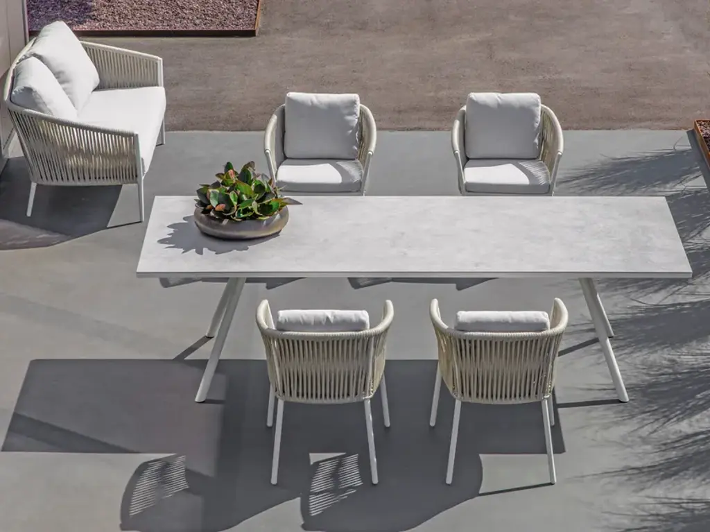For an elegant dining area, the proven and extensive Cosmo Collection offers the ideal chair which can also be complemented with the matching bench. Cosmo is in woven from weather-resistant outdoor fibers and together with the matching cushion set offers the best seating comfort.