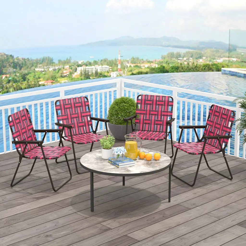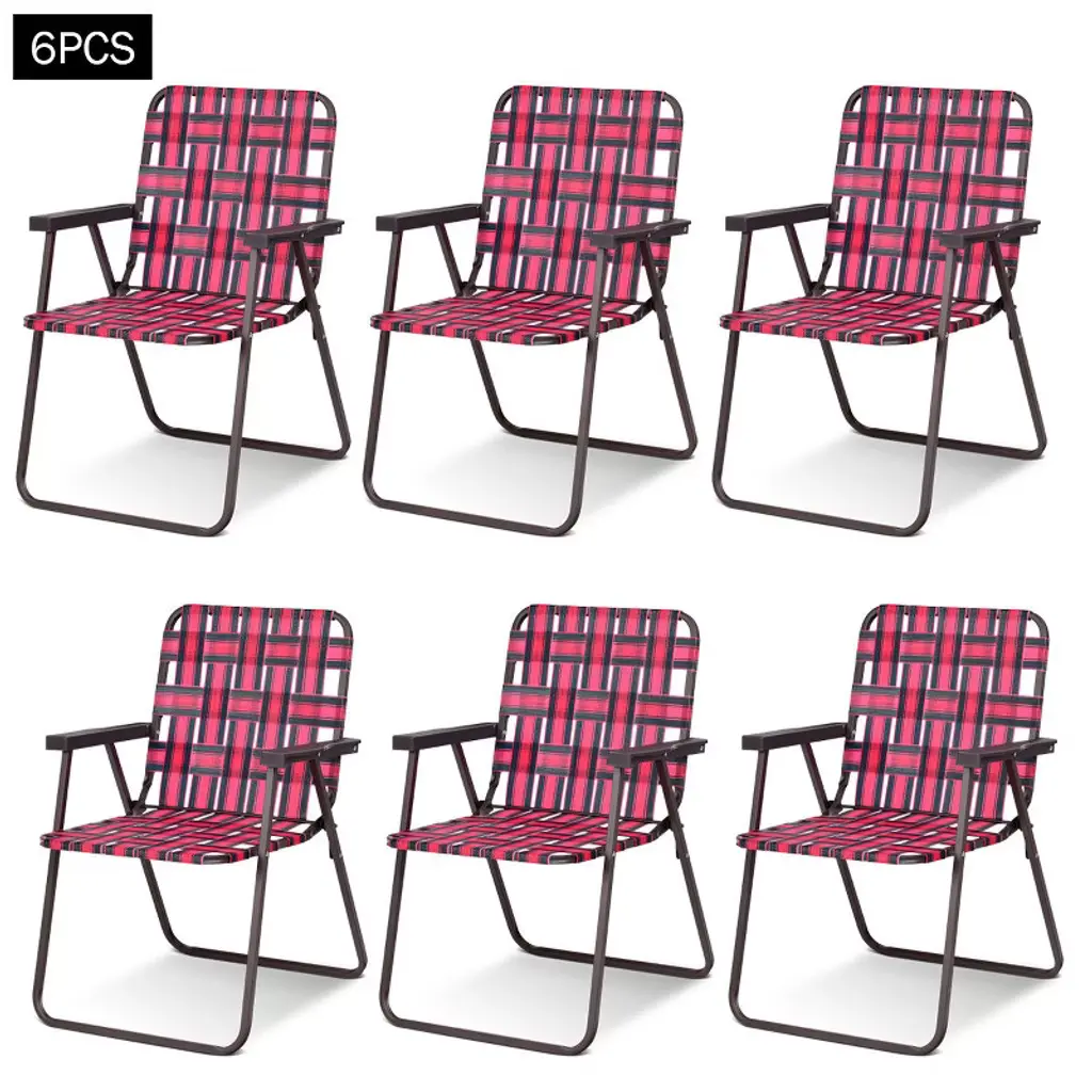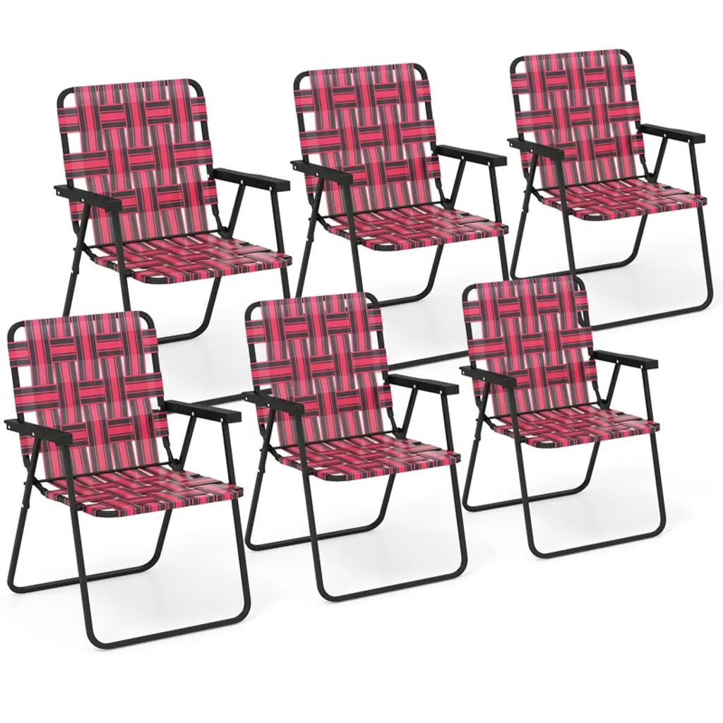 These webbed folding chairs set of 2/4/6 will bring you much comfort and convenience during outdoor relaxing. These chairs boast tear-resistant and weatherproof PE webbed seat and back for breathability and durability. You can fold them in seconds for compact storage. And each chair is at just 7 lbs, making transport a breeze. The robust metal frame supports up to 330 lbs, while the widened armrests ensure a cozy sit-down. These chairs are versatile companions in backyard, porch, camping, beach and so on. Embrace a blend of sturdiness and comfort with these foldable chairs that are ready to accompany you on your adventures.FeaturesPE webbed seat and back for breathability and long-time use Quick-folding design and compact folding size for space-saving storage 7 lbs light weight of each chair for effortless carrying Stable metal frame for 330 lbs strong support Comfortable to sit with wide armrests Suitable for beach, camping, backyard and so on No need to assemble, saving time and effortColor: Red Material: PE, Metal Overall Dimension: 23" x 22.5" x 31" (L x W x H) Folding Dimension: 29.5" x 22.5" x 3" (L x W x Thickness) Seat Height: 16" Seat Depth: 16" Total Net Weight: 14/28/42 lbs Weight Capacity: 330 lbs Package Includes: 2/4/6 x Patio Folding Chairs 1 x Instruction